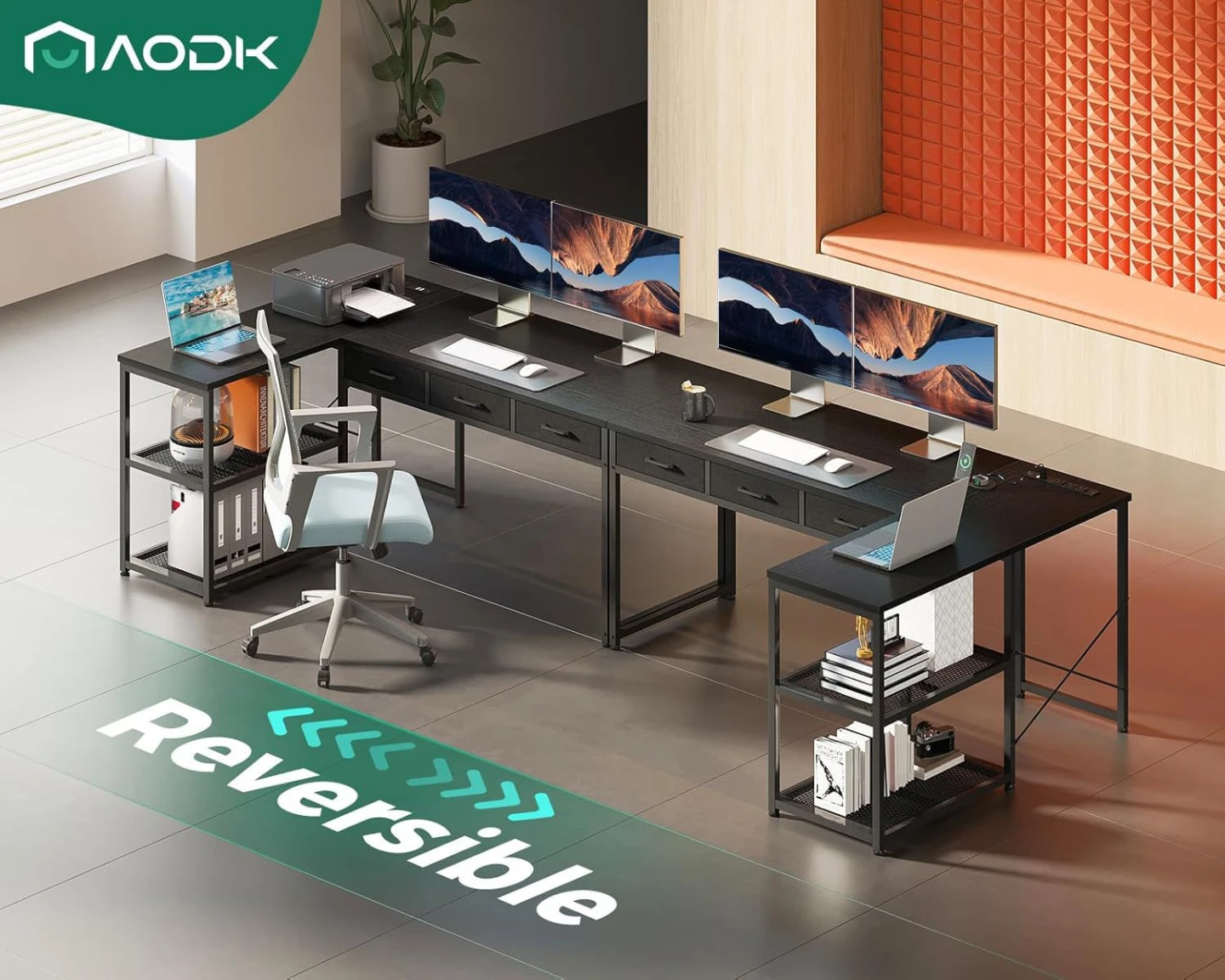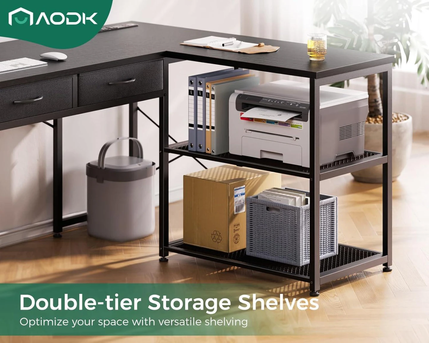 AODK L-Shaped Desk with Storage Shelves and Drawers