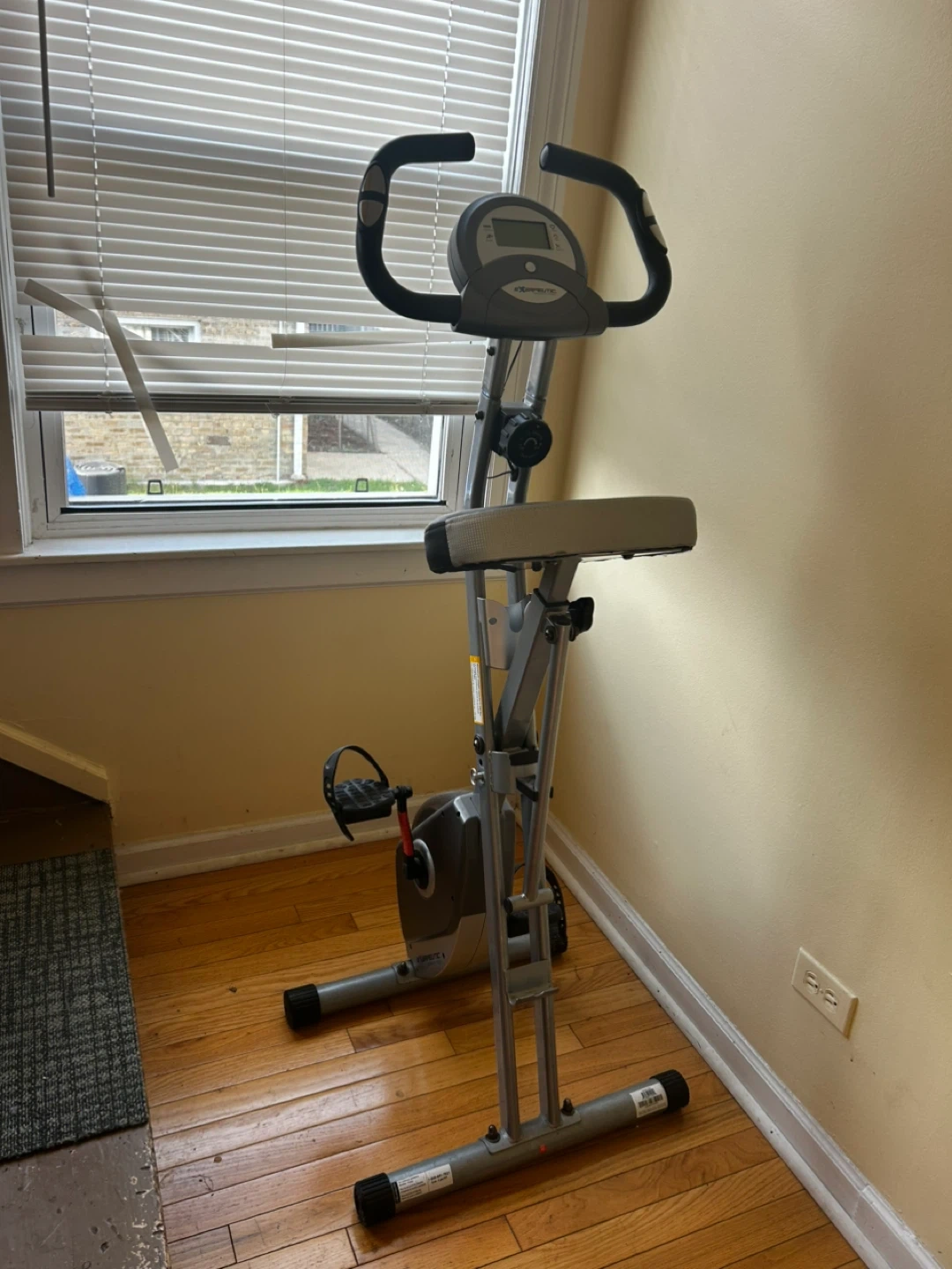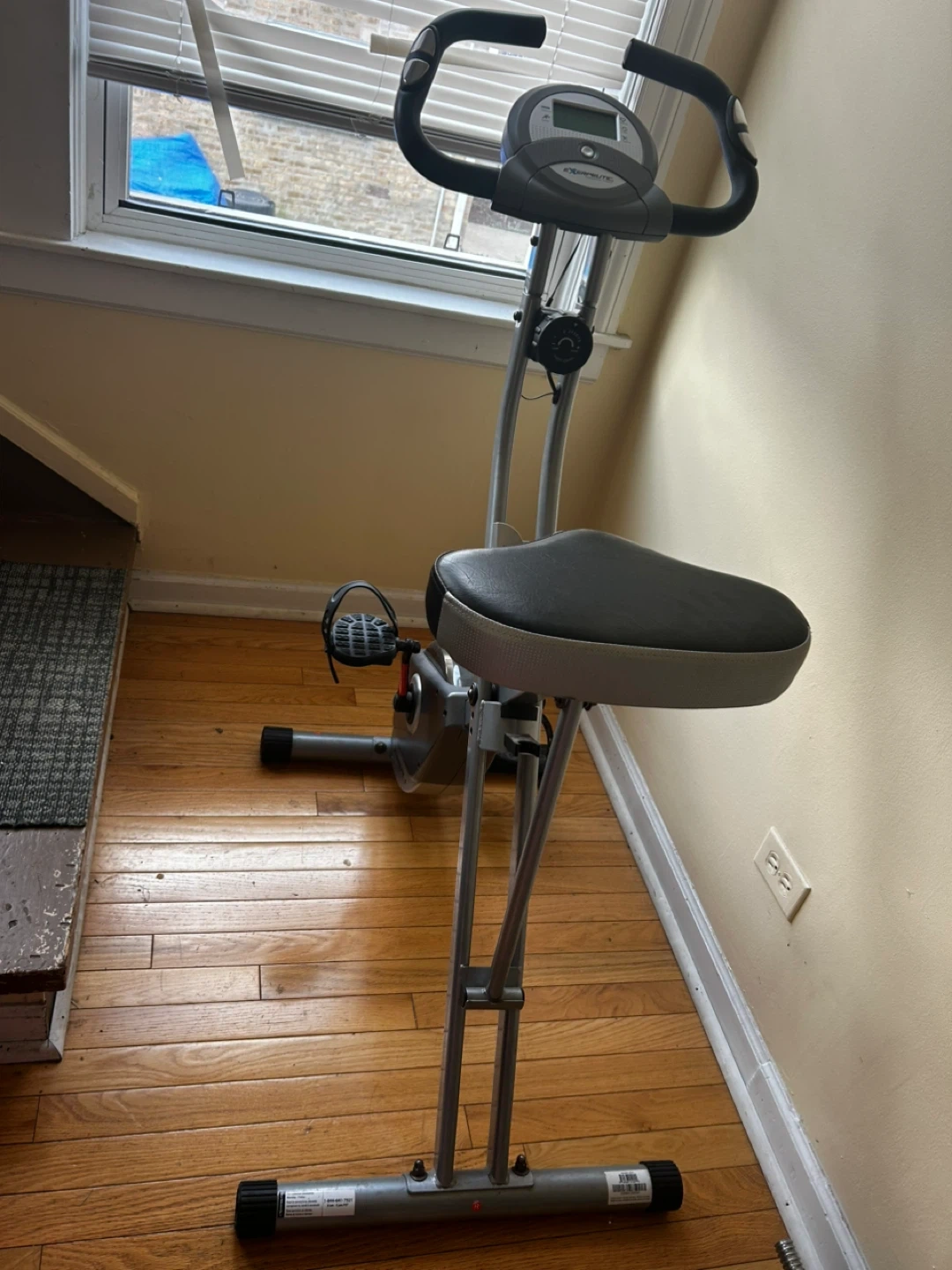 This ProForm exercise bike is a great addition to your home gym. It features an adjustable seat and handlebars for a comfortable workout. The digital display shows your time, speed, distance, and calories burned. It's foldable for easy storage!