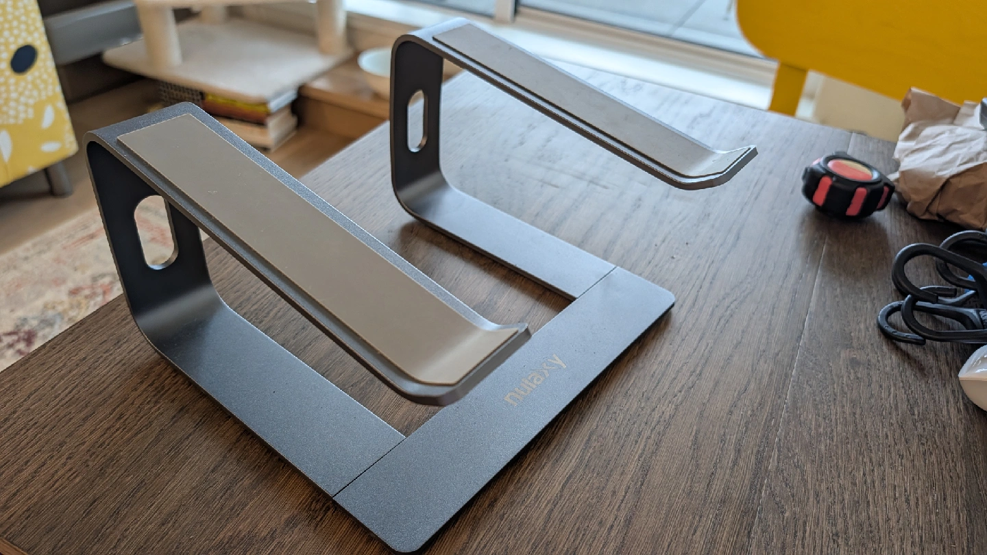 10Selling a nulaxy laptop stand in silver. It's in great condition and ready to help elevate your workspace!
