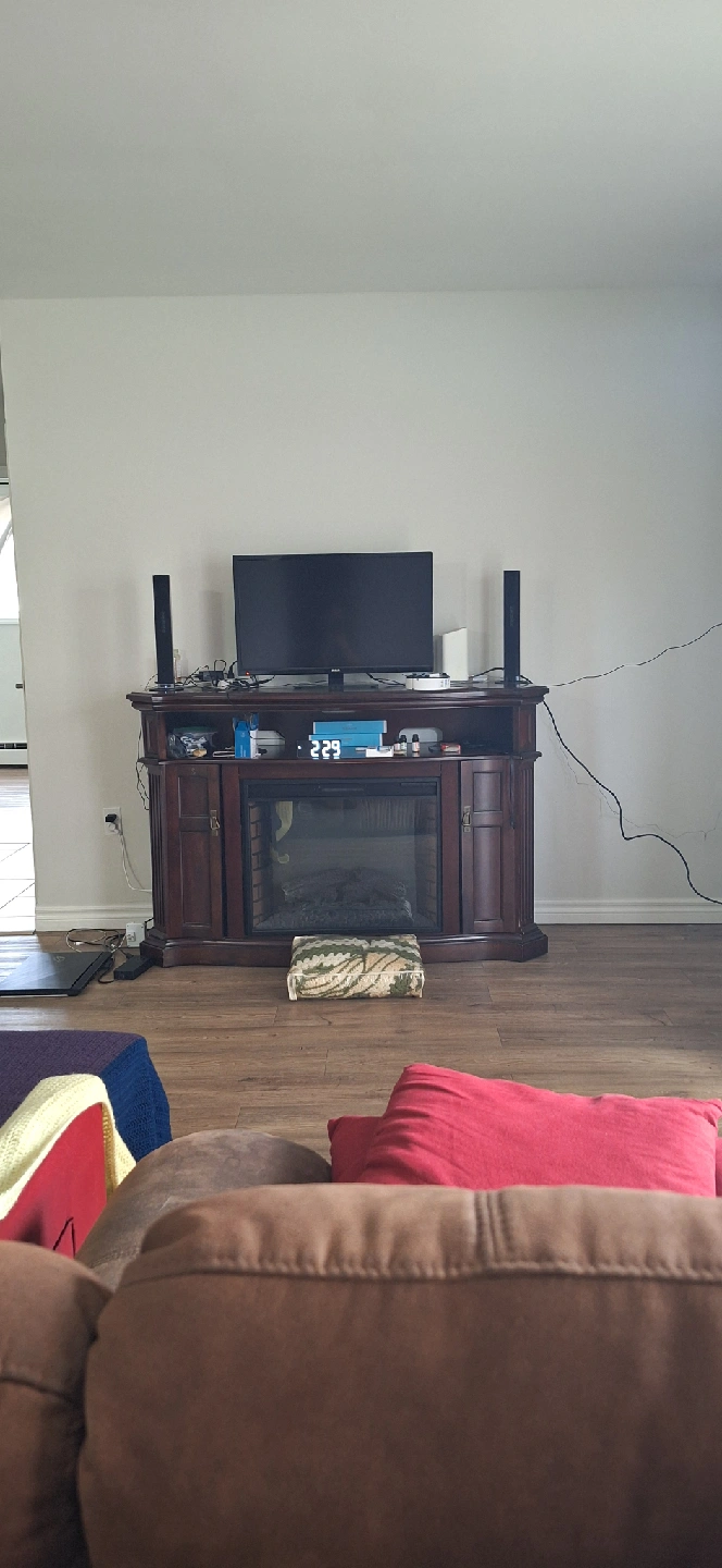 91null the fire place works but not in my apartment ๐ so it has to go you can see there is stuff on it the biggest tv would be about 60 or 55. you will need 2 people or more to move it.. not sure how to change my address on here sorry everyone I am trying
