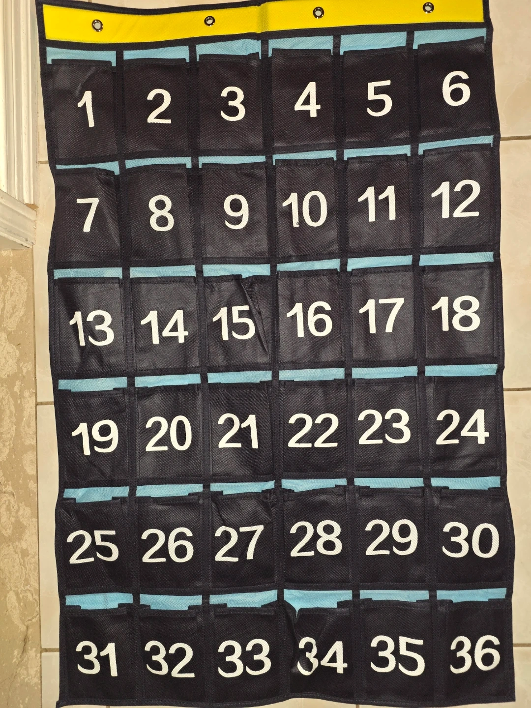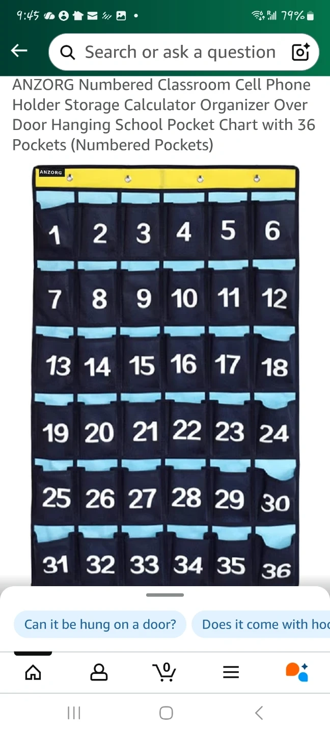 85I'm selling an ANZORG numbered classroom cell phone holder storage calculator organizer over door hanging school pocket chart with 36 pockets. It's perfect for keeping things organized!