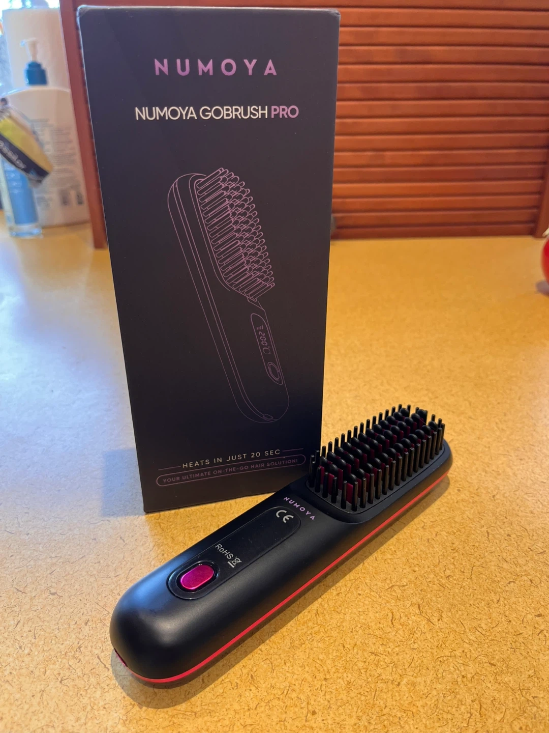 New, still in box along with USB cord and accessories. Purchased 3 weeks ago from Numoya but does not work for my short fine and curly hair. Great for smoothing and styling chin length or longer hair. Super easy to use, heats in 20 seconds with a variety of settings.