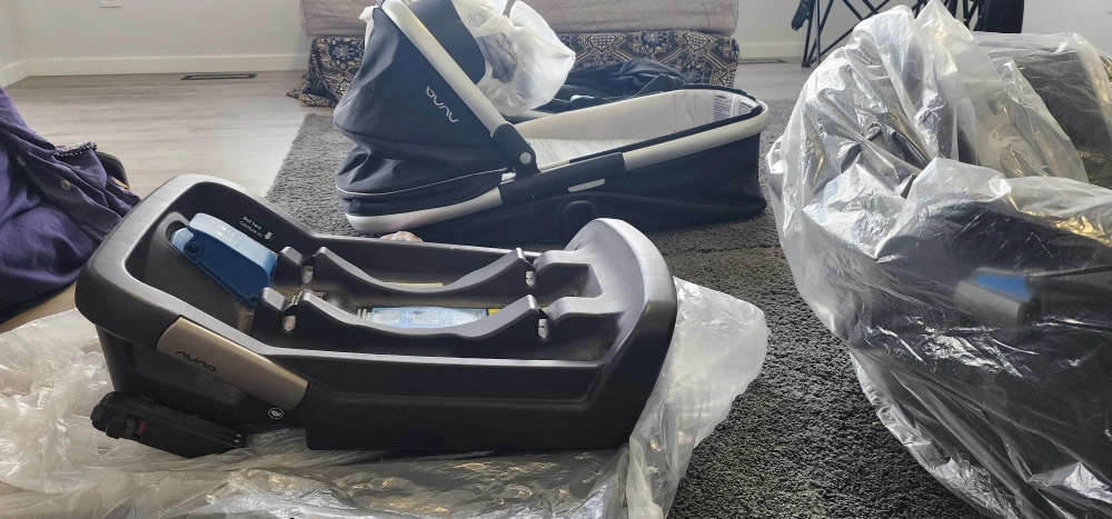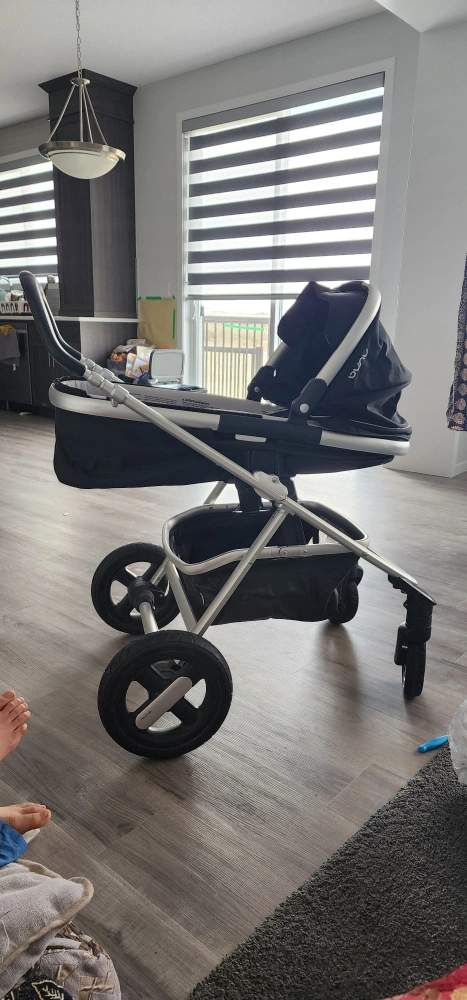 10Nuna TOV stroller and car seat travel system. Silver frame, black fabric. Includes bassinet and stroller frame. Great condition. Open to offers