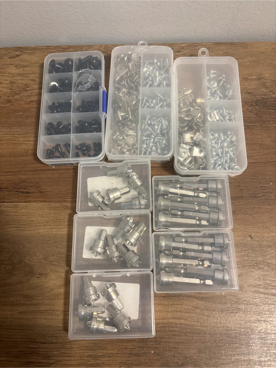 This set includes various black and silver screws and clips organized in compartments. It also contains multiple PH2 drill bits. Handy for various home or workshop projects!
