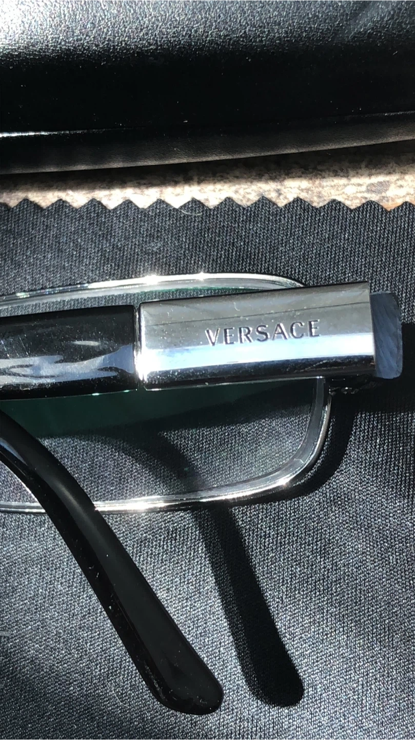 This is Versace eyeglasses with a silver and black frame. They come with the original Versace hard case and cleaning cloth. Made in Italy.