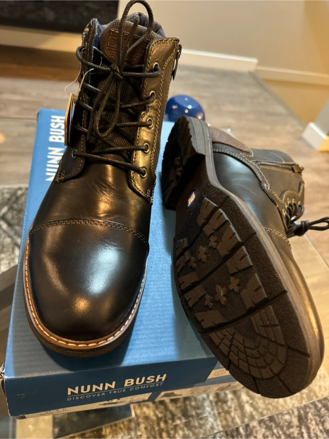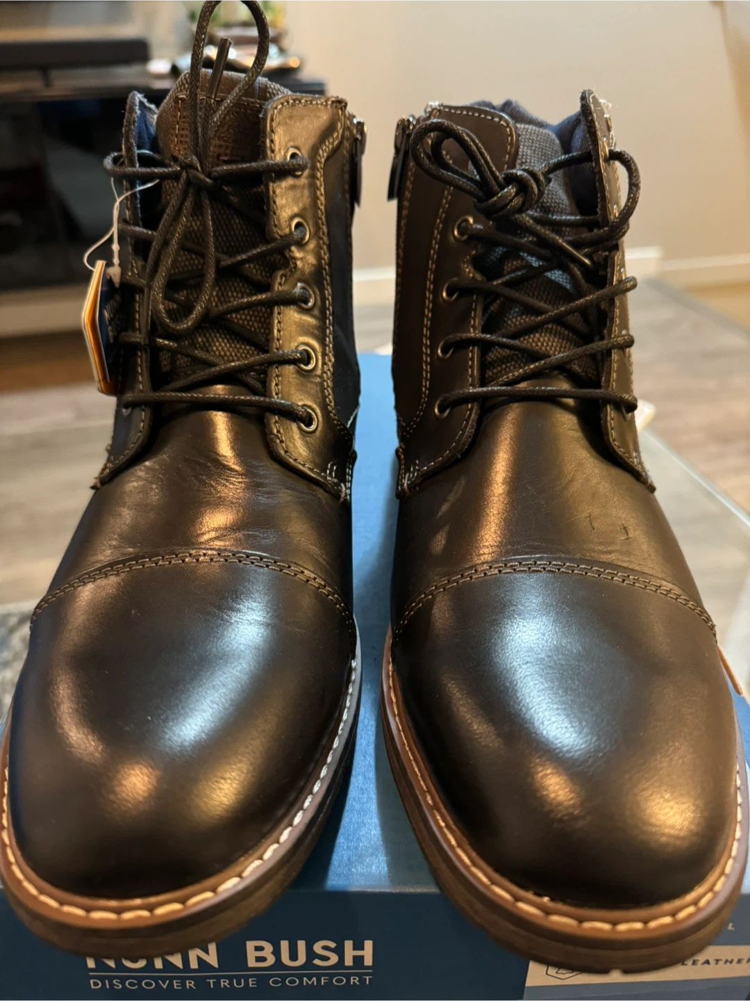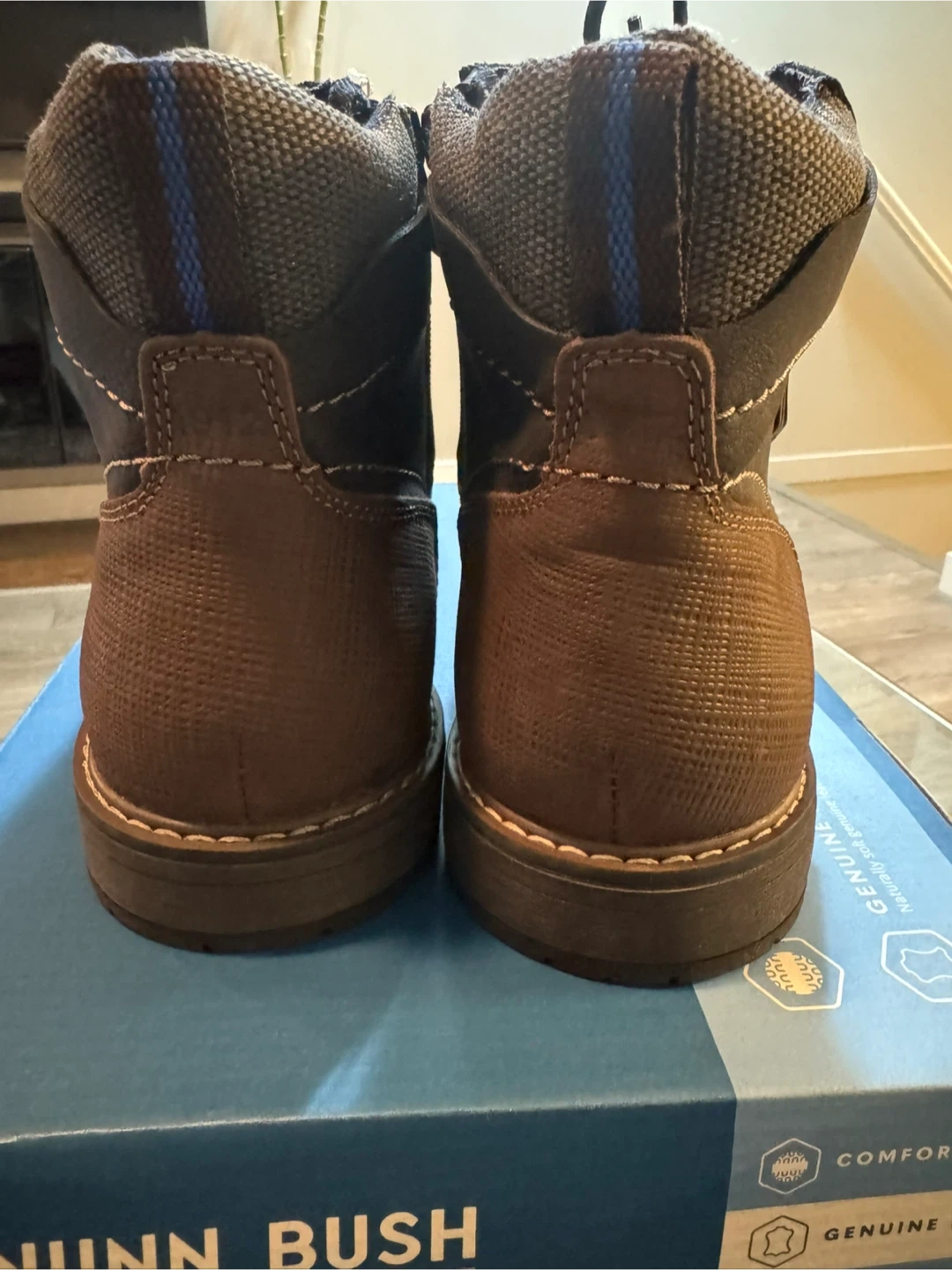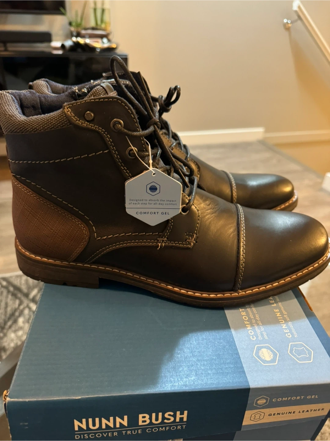 60Selling a pair of Nunn Bush boots with comfort gel. They are made with genuine leather and designed to absorb the impact of each step for all-day comfort. The box is included!