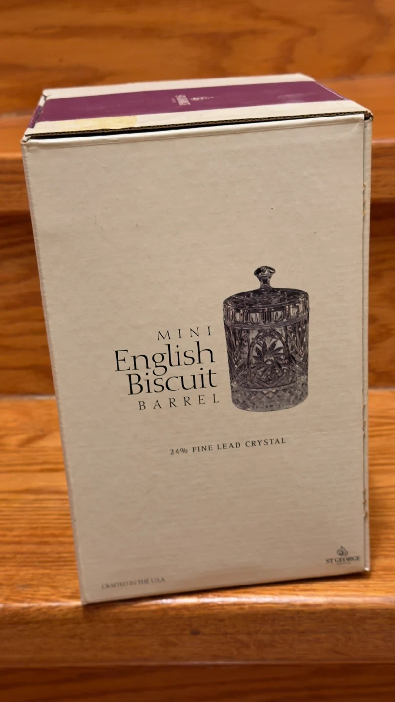 This is a mini English biscuit barrel from Tuscany's Classic Series. It's made from 24% fine lead crystal. This decorative jar is crafted in the USA.