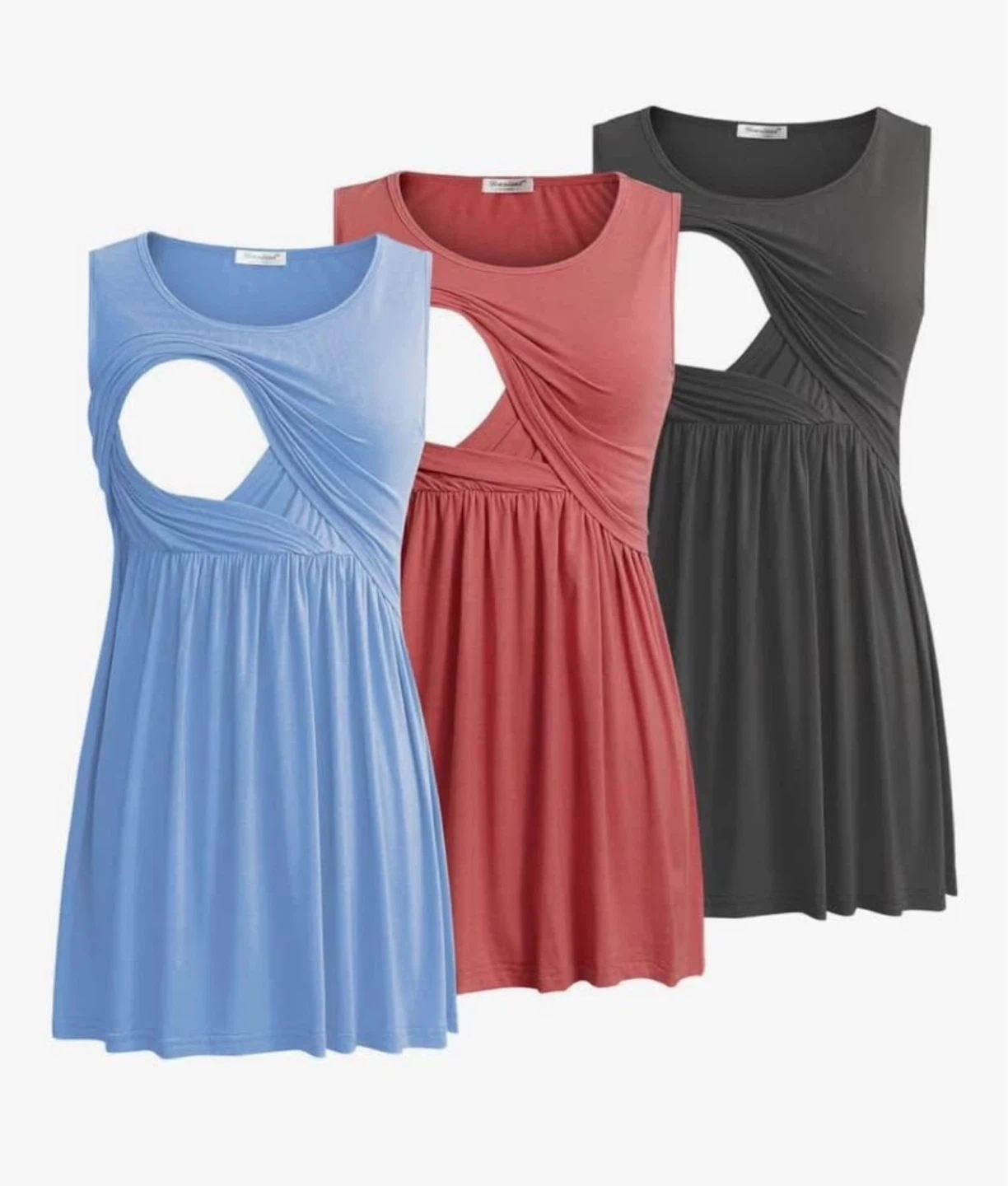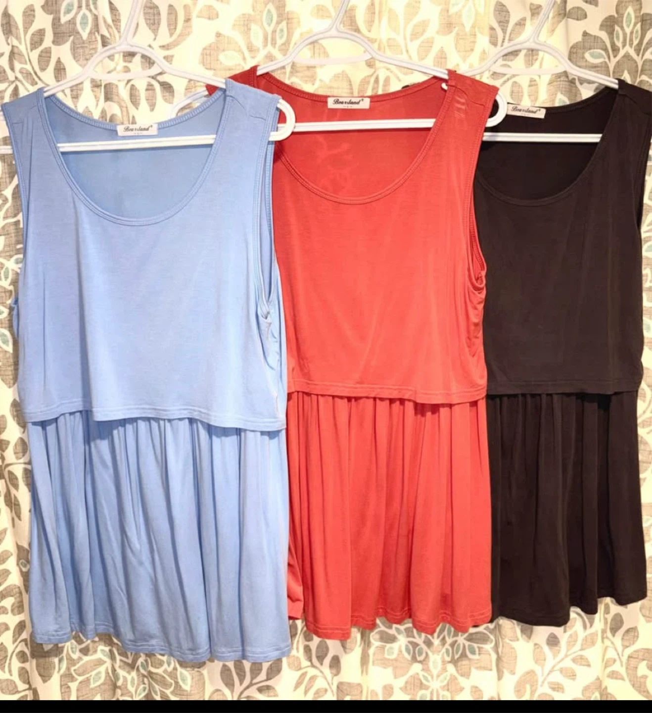 65Perfect for new moms! Size is large. There's a small mark on the pink shirt but otherwise they are in good condition! Originally bought for $54.99. Selling all 3 for $15 FIRM! Also have nursing bras and a hand pump I barely used for $15