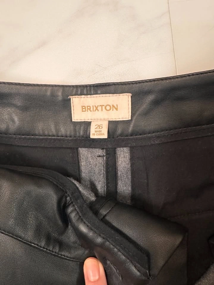 NWT Brixton ABERDEEN Black Faux Leather Trouser Pants Size 26