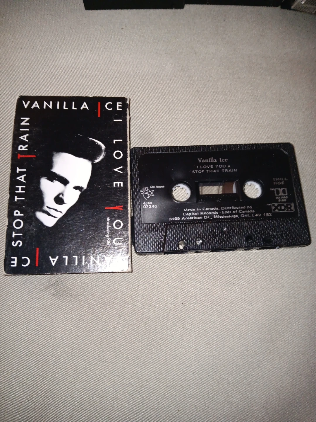 Vanilla Ice "Stop That Train" / "I Love You" cassette single. Recorded on the chill side. Made in Canada.