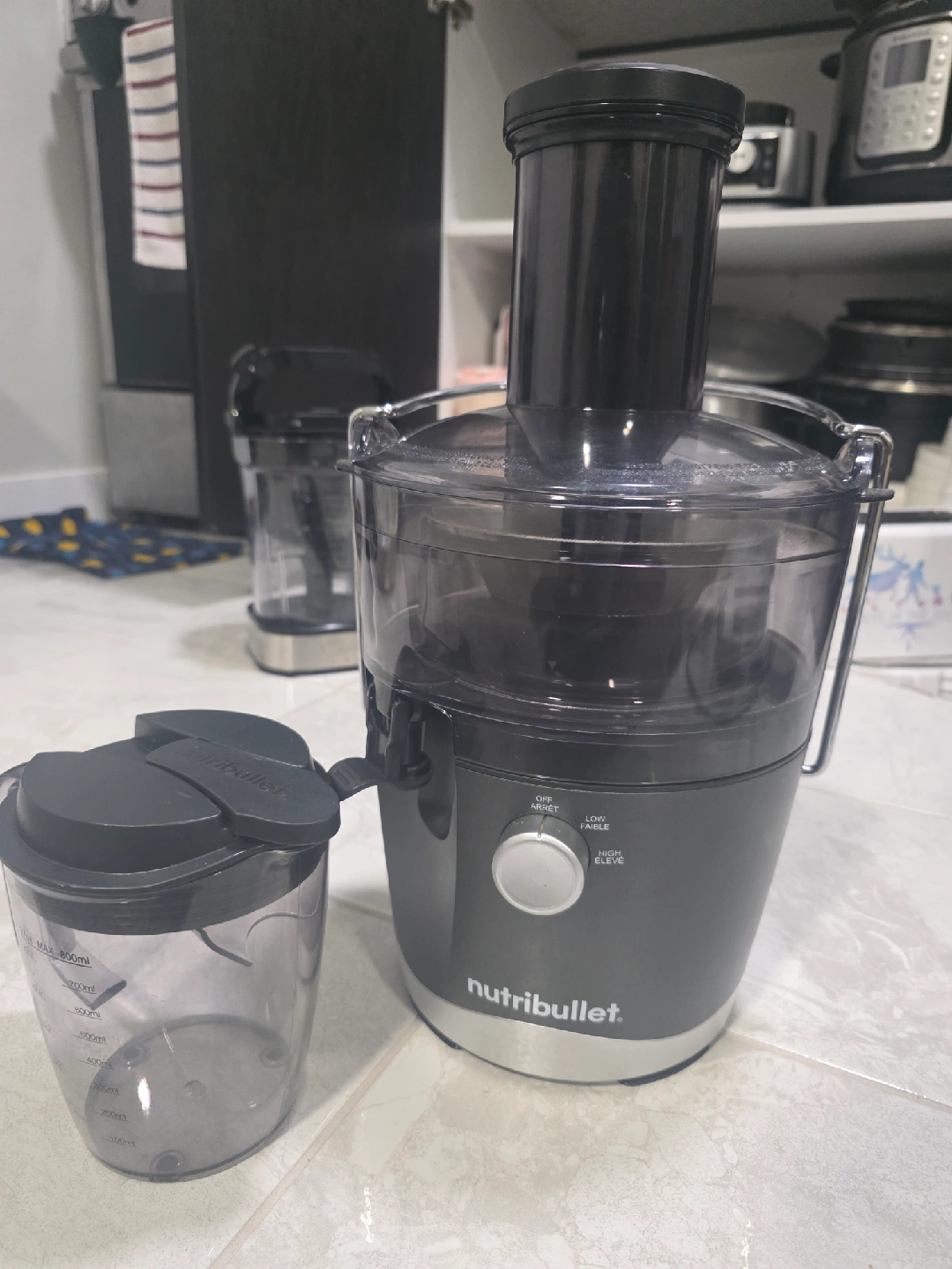 Selling a Nutribullet juicer in excellent condition! It's perfect for making fresh and healthy juices at home. It features a dial with Off, Low, and High settings. Originally bought for $99.99. It comes with all the necessary components to get you started on your juicing journey