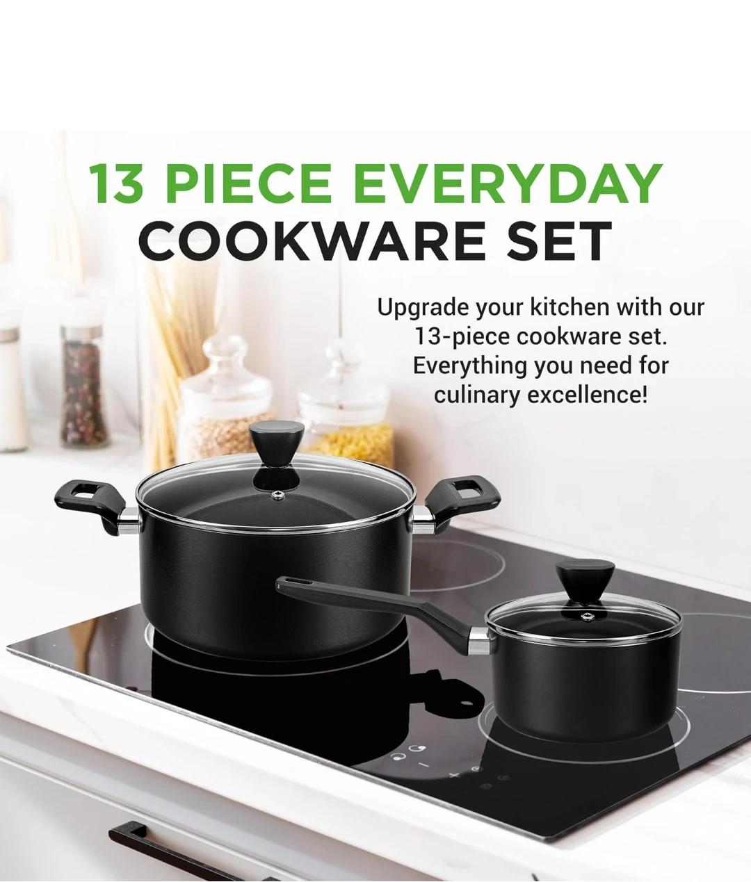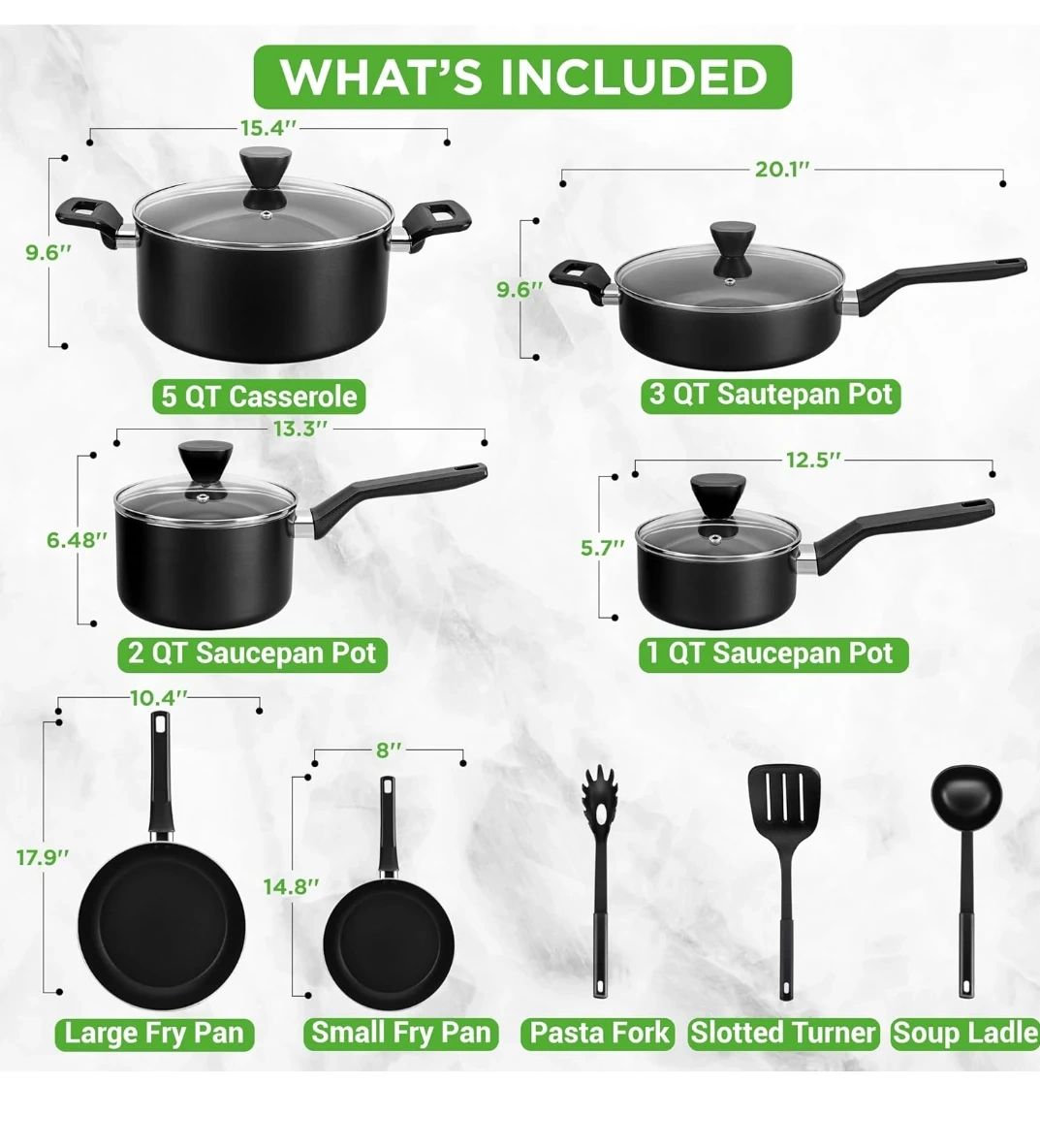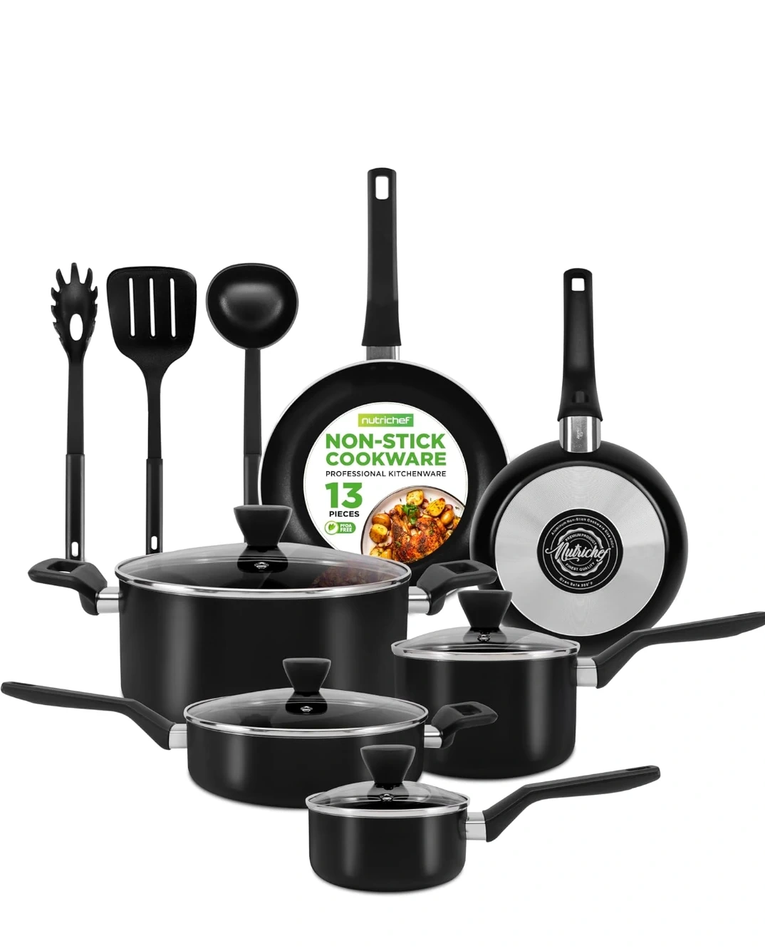 72NutriChef 13-Piece Nonstick Cookware Set - Heat-Resistant Pots, Pans, Casserole, Lids, Ladle, Fork, & Strainer - Durable Kitchen Essentials for Cooking & Frying. Brand new & Sealed. Cash Only Door Pick Up Pick Up Code:142C