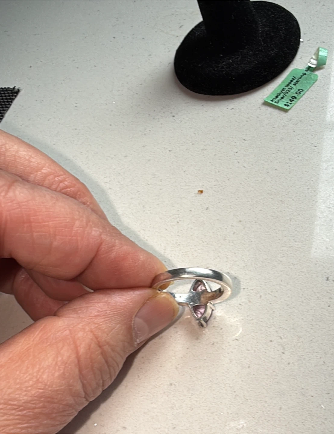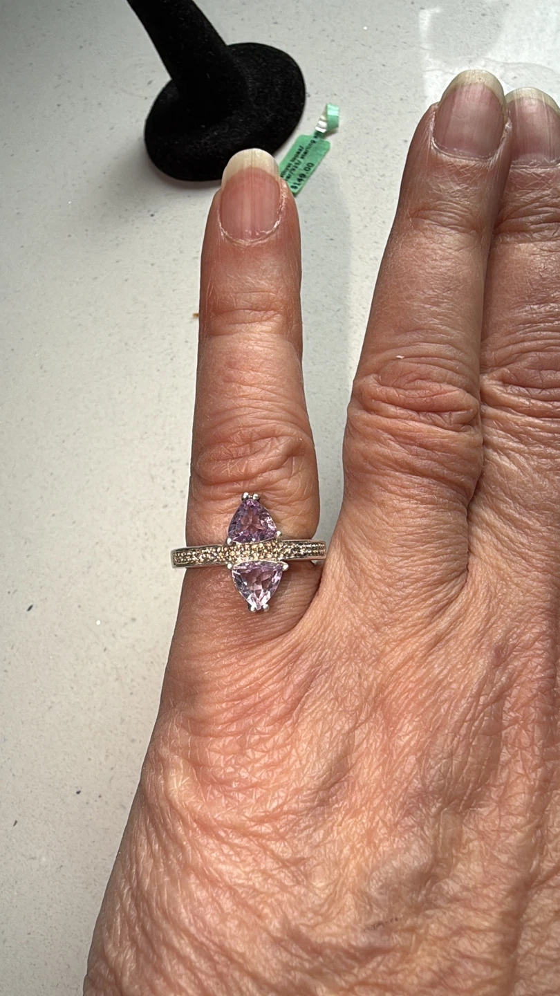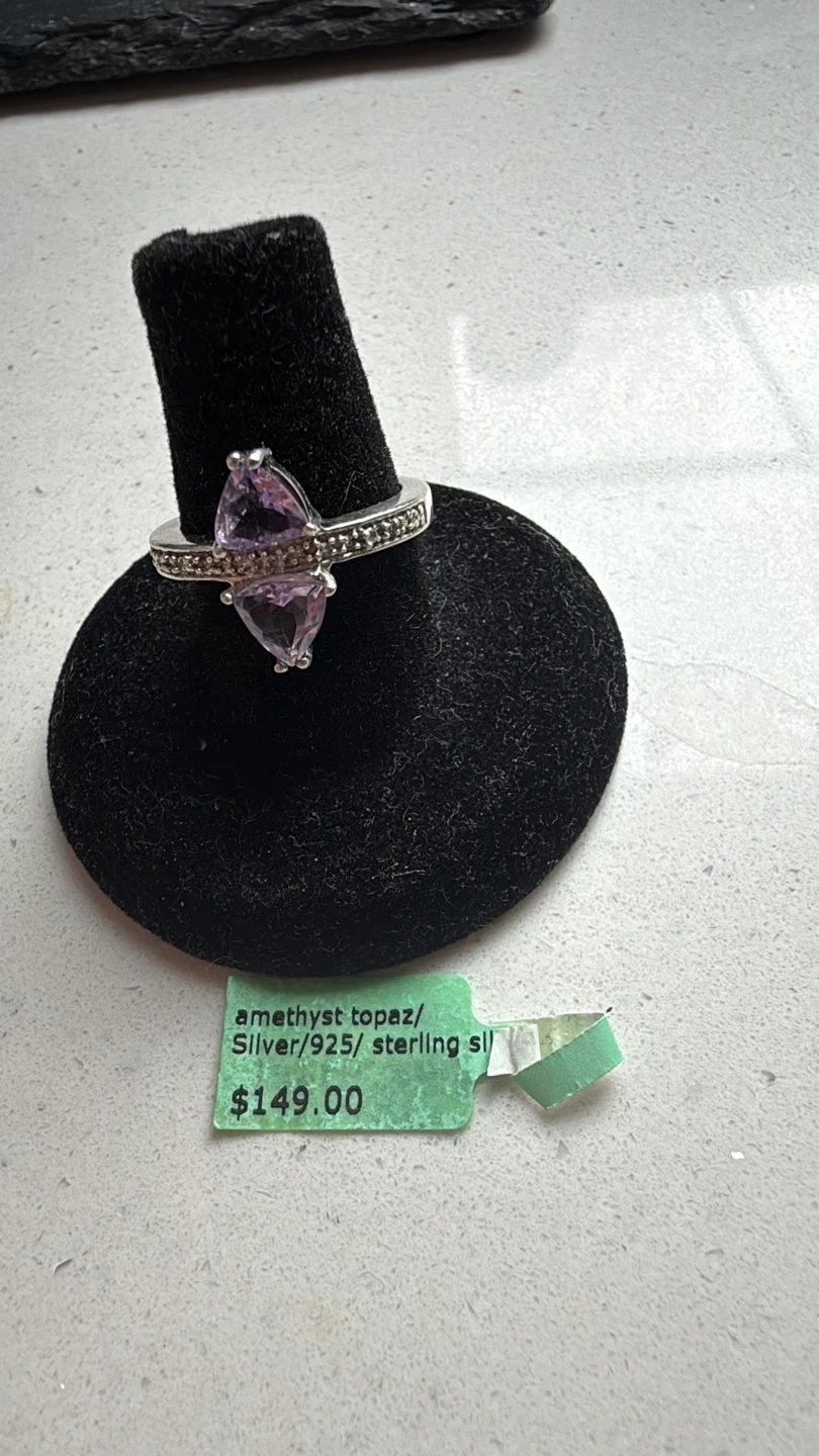 This ring features a marquise-cut Genuine Amethyst & topaz set in 925 stamped sterling silver.