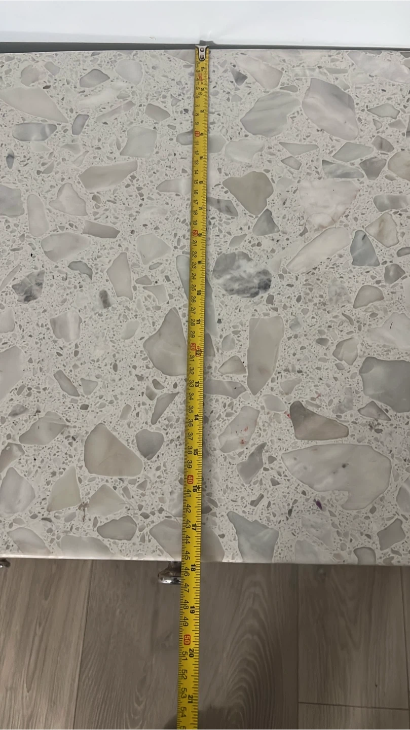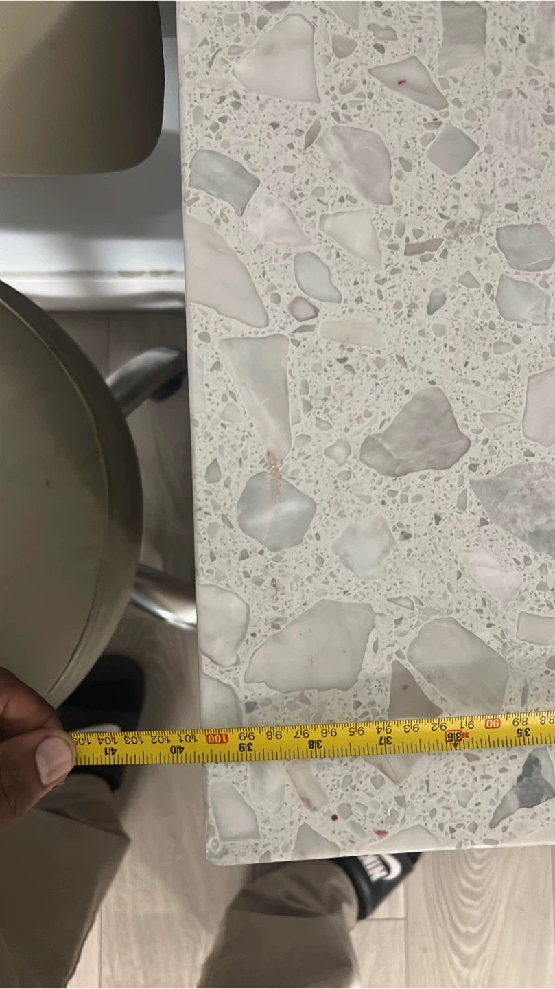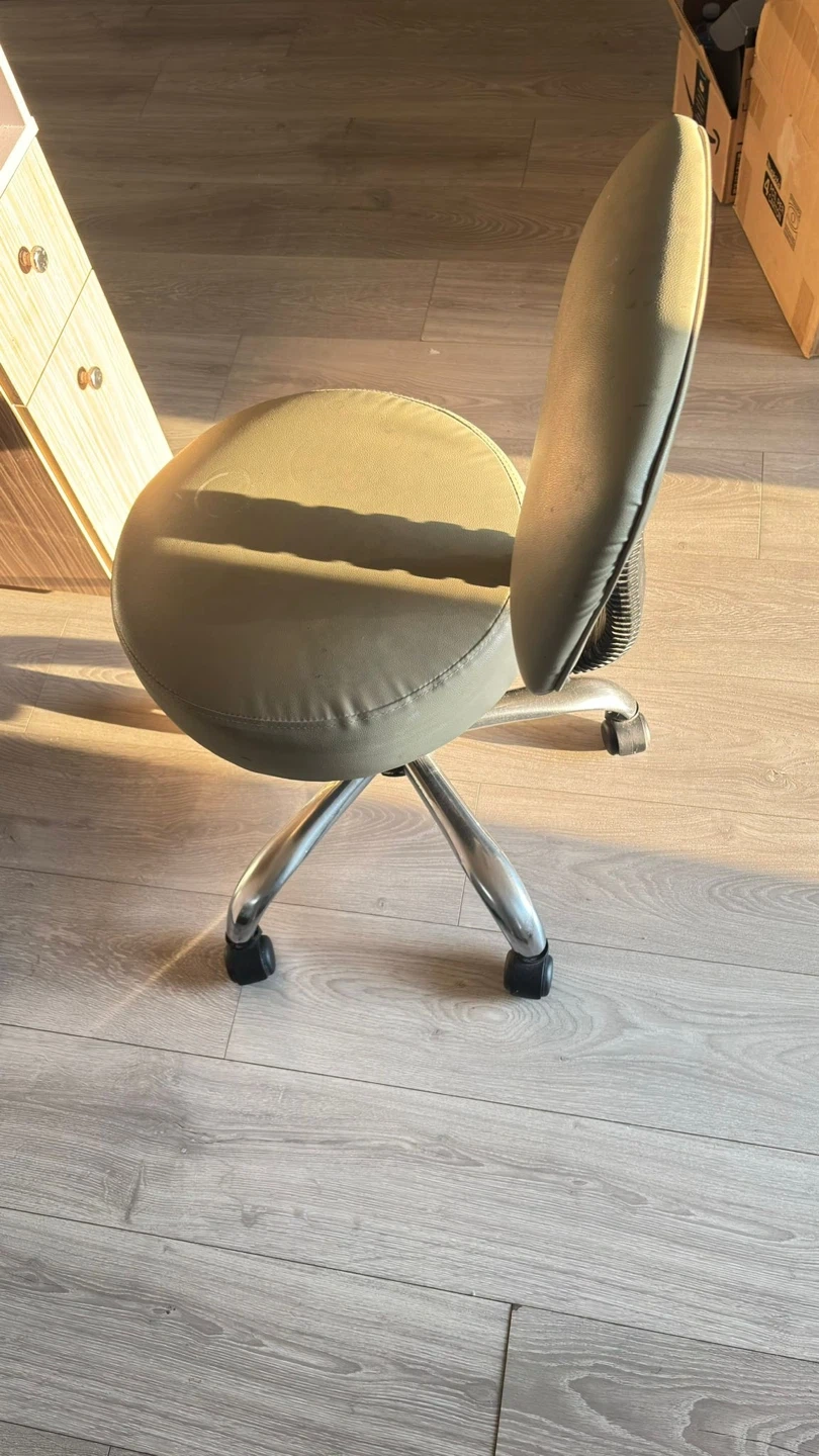 Selling a manicure table with a matching chair. The table features a speckled stone-like top and wood-look drawers and shelving. Great for a home salon setup!