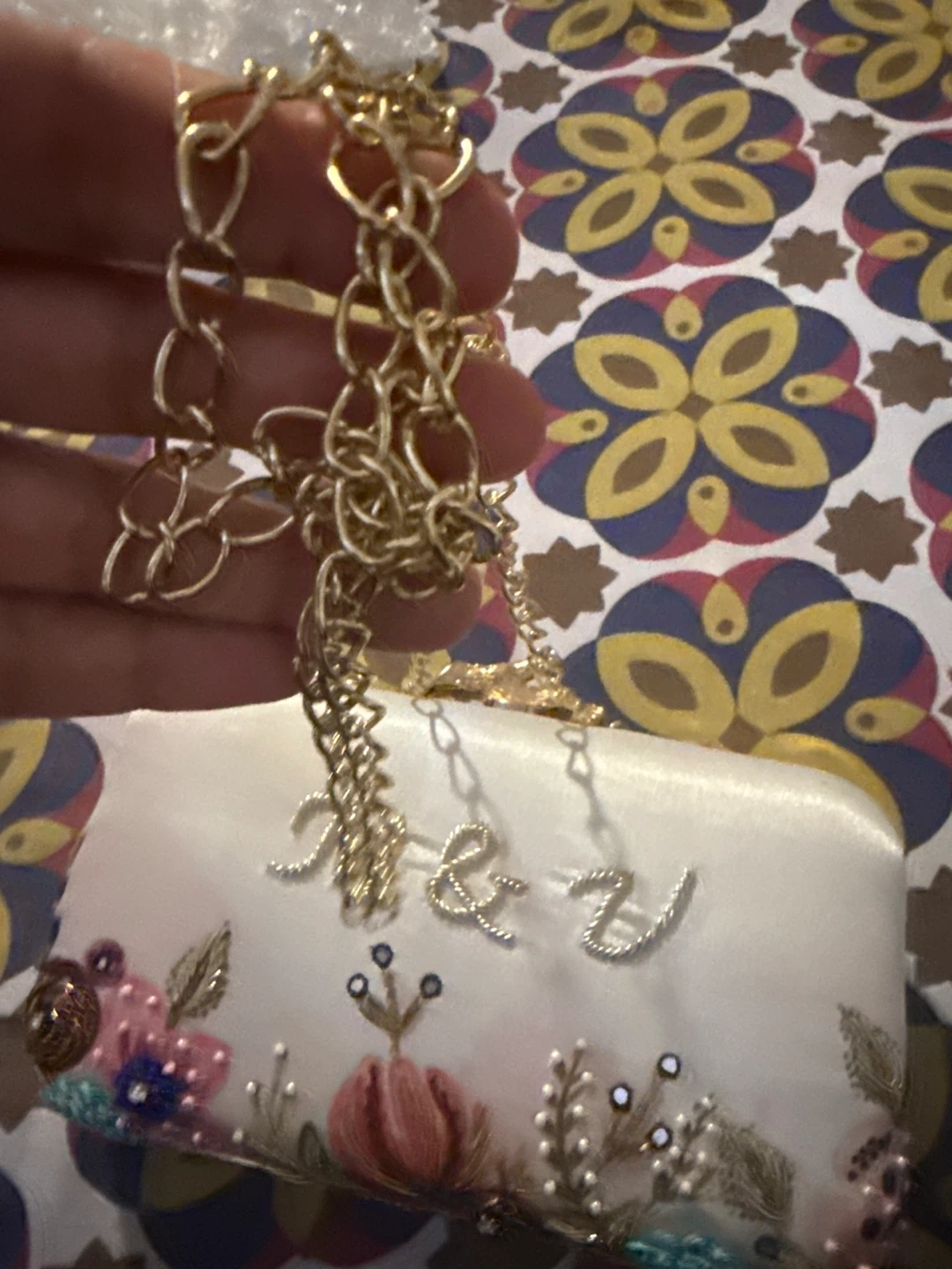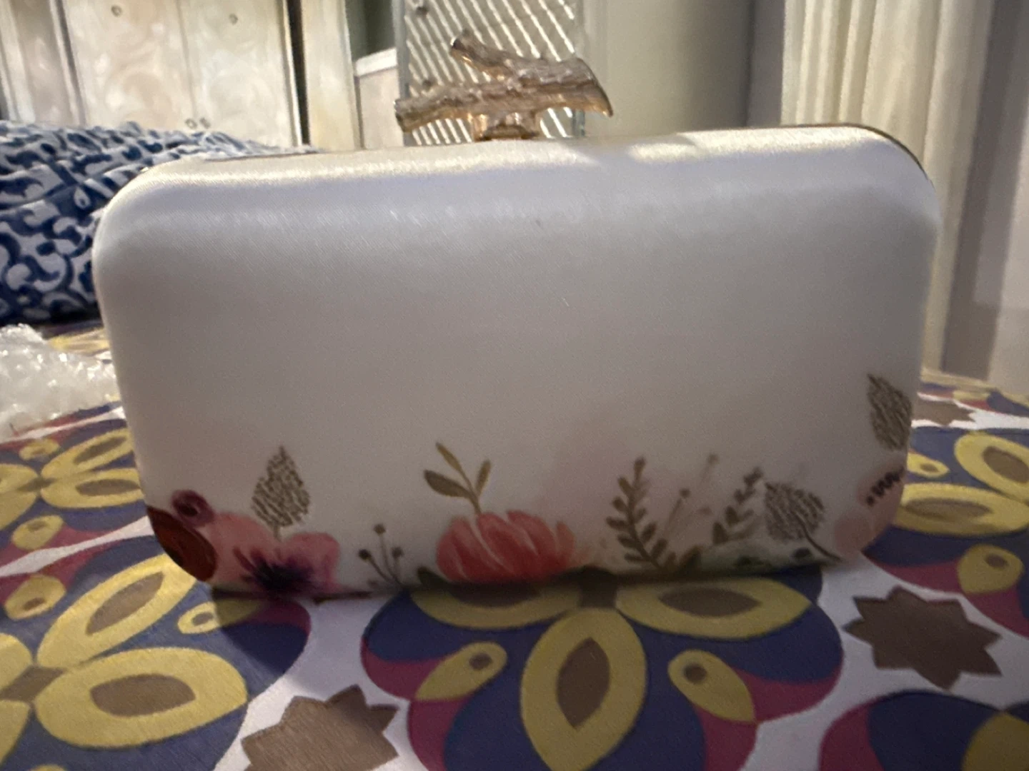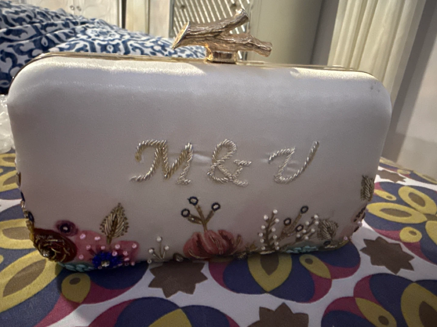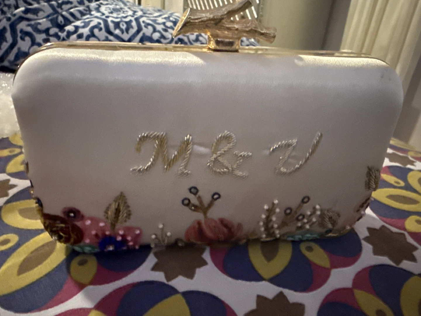 Selling a beautiful clutch with delicate embroidery and a unique clasp. It's in great condition and perfect for special occasions or adding a touch of elegance to any outfit
