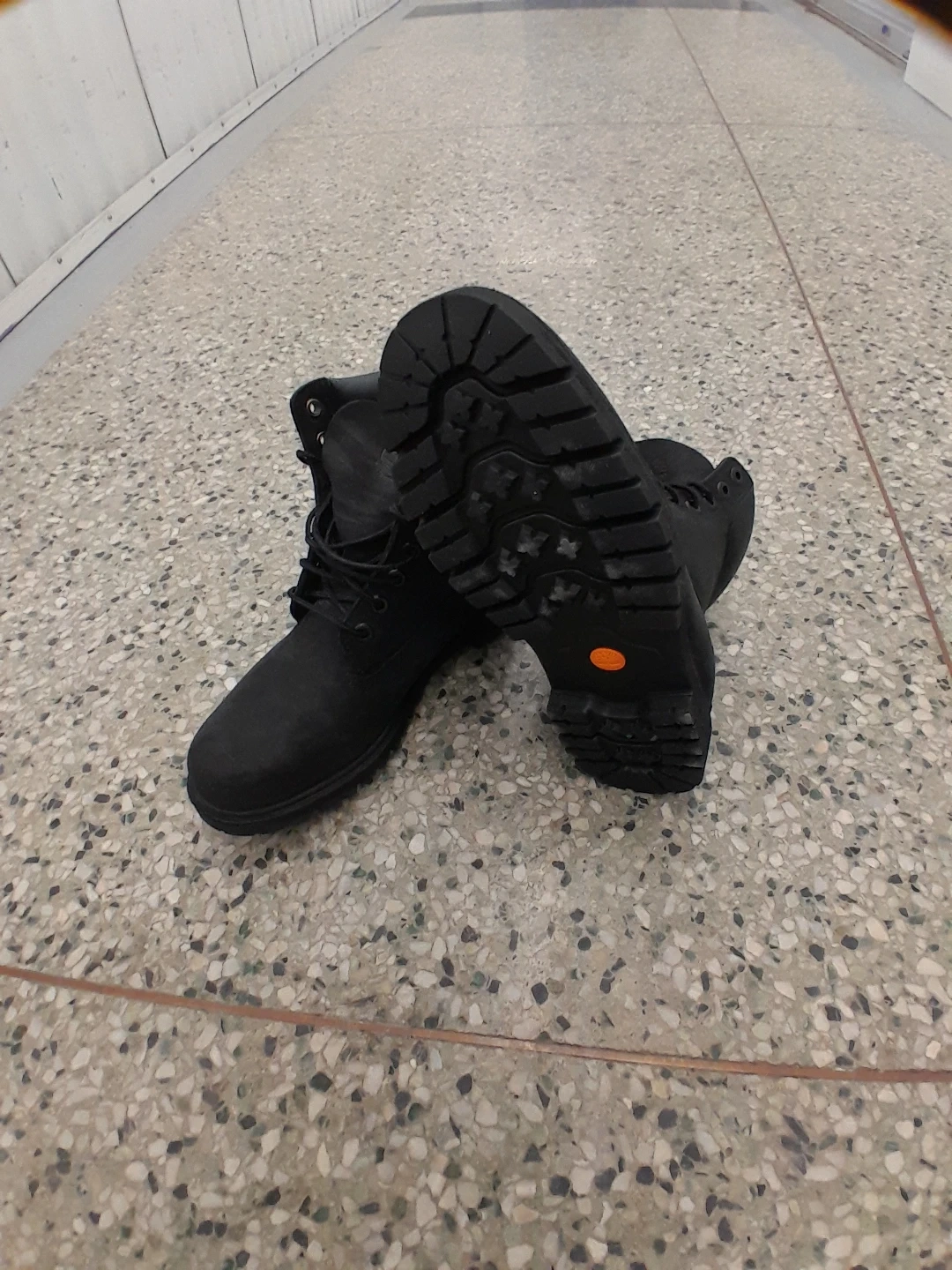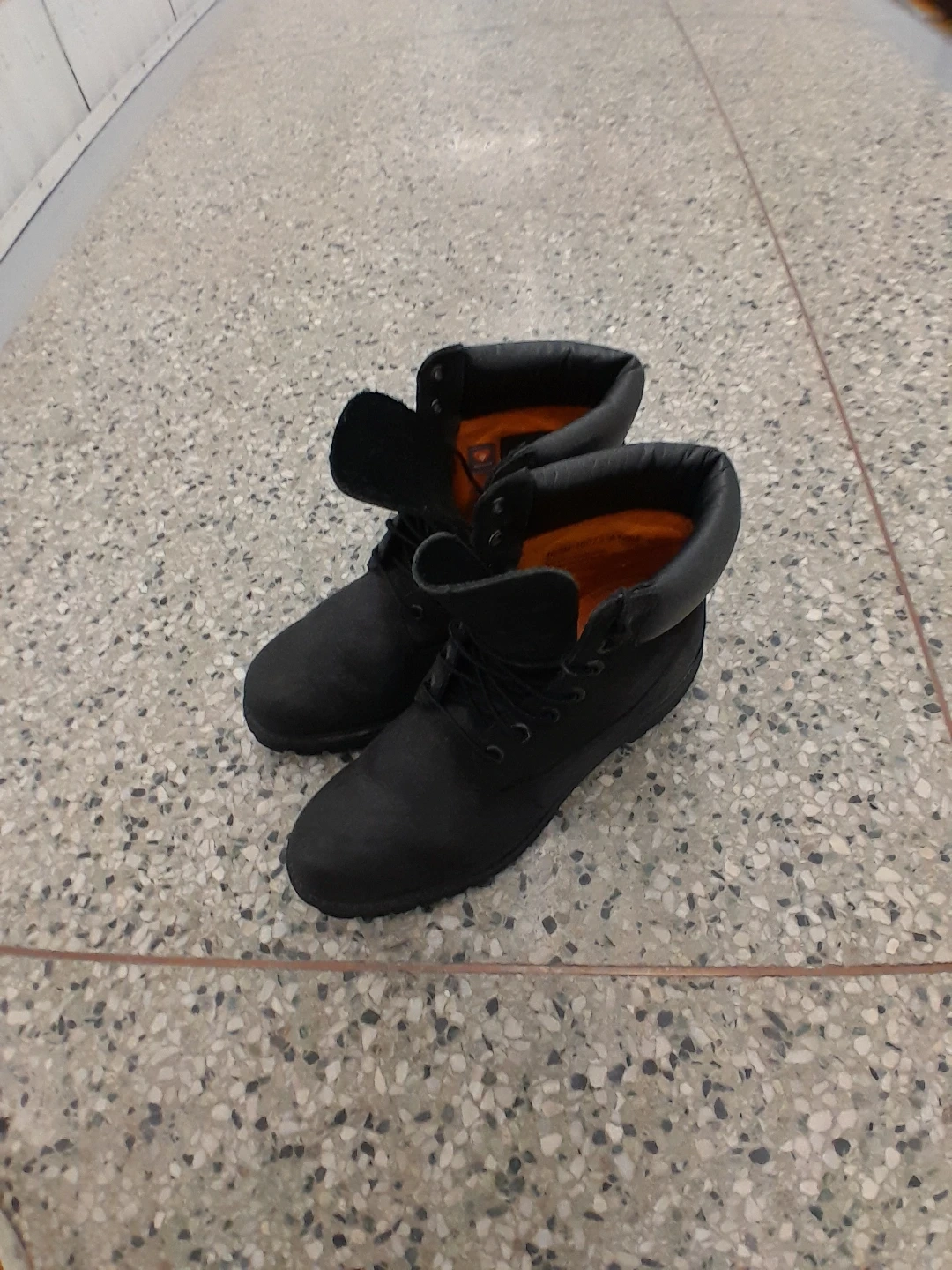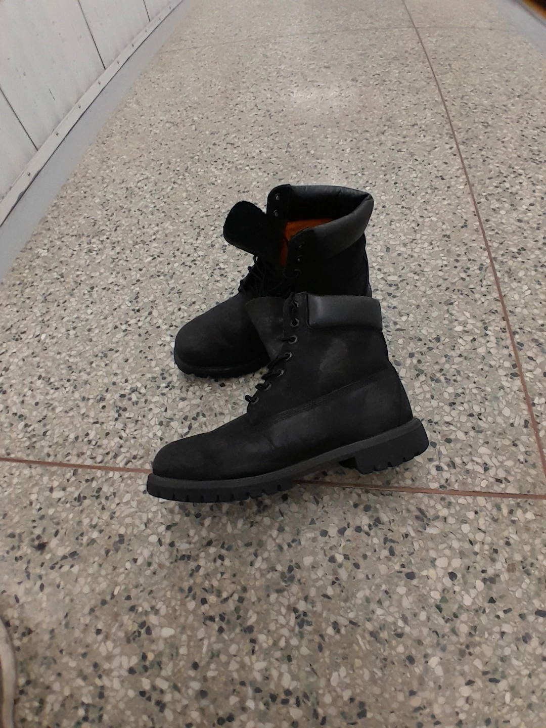 Classic black Timberland boots. Features a durable rubber sole and comfortable interior lining. These boots are great for outdoor activities or everyday wear. Men's Size 10