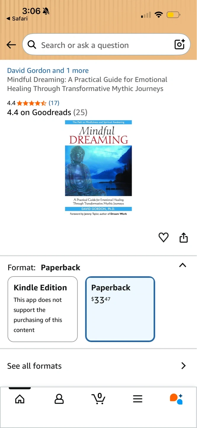 This paperback book, 'Mindful Dreaming: A Practical Guide for Emotional Healing Through Transformative Mythic Journeys' by David Gordon, Ph.D., explores mindfulness and spiritual awakening. It's a guide for emotional healing. This book would be useful for anyone interested in exploring their dreams and subconscious.