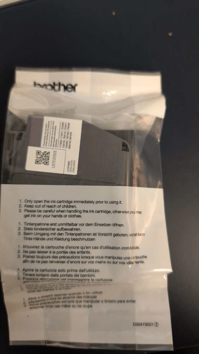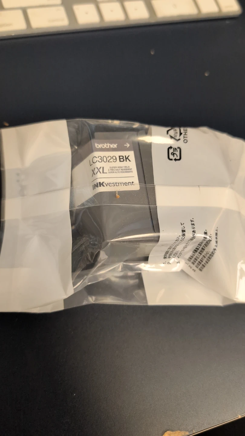 This is a Brother LC3029 BK XXL ink cartridge. It's a super high yield black ink. Brand new in the package. No longer have this printer, so no longer needed