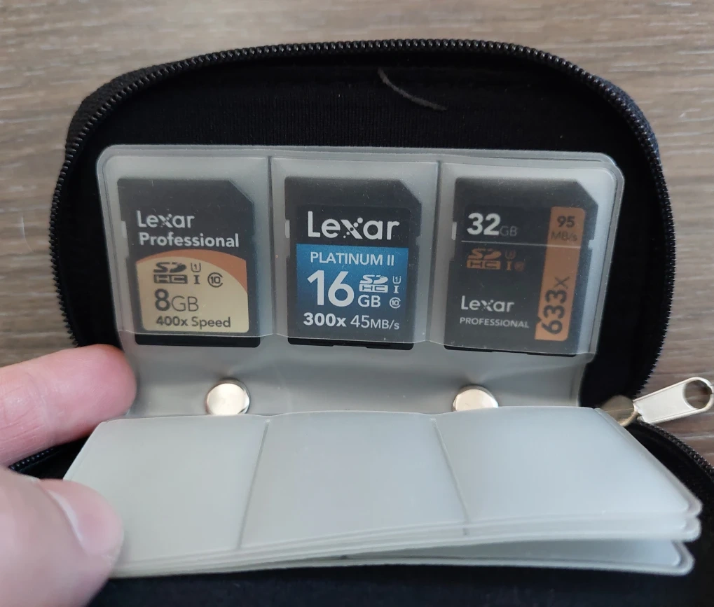 - 3x Lexar memory cards (8GB Pro 400x + 16GB Platinum II 300x + 32GB Pro 633x)