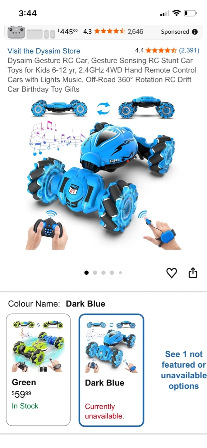 New and sealed in the box. This particular colour has been discontinued. I’m selling for less than what I paid. This remote control stunt car is designed for kids 6-12 years old and features 4WD that can perform 360° rotations. Includes lights and music. Pick up on Promontory. Cash only.