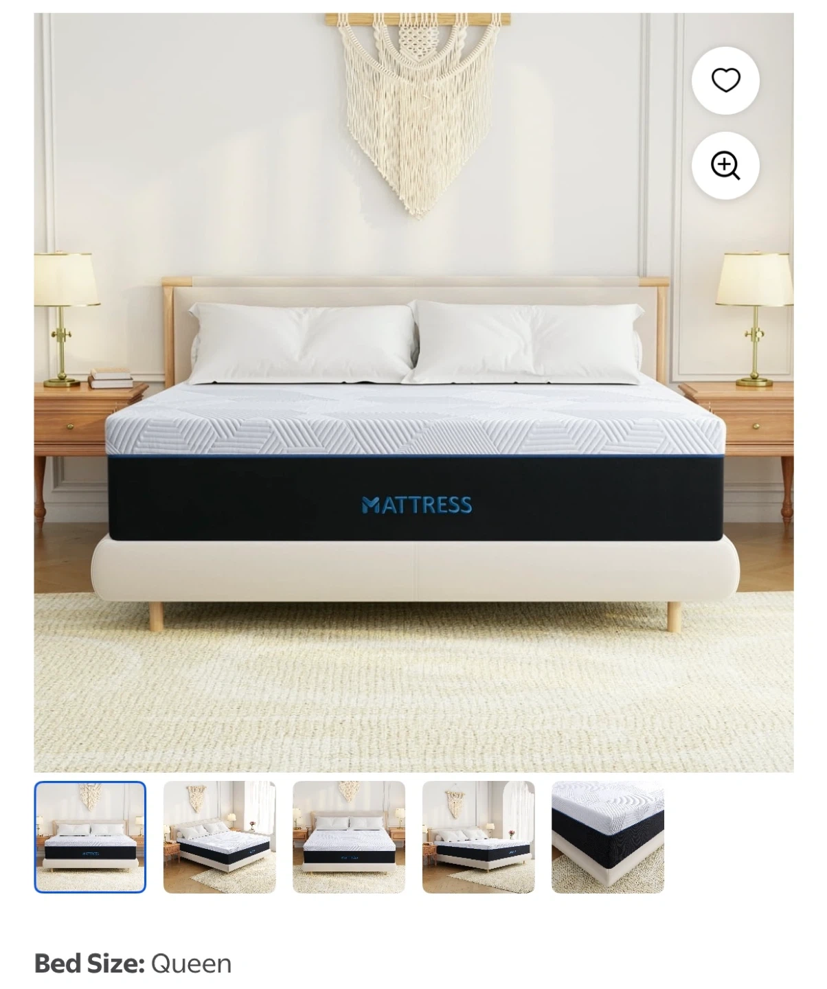 This is a queen-sized mattress. It's designed with a black side panel and a white quilted top. It's a comfortable and supportive mattress.