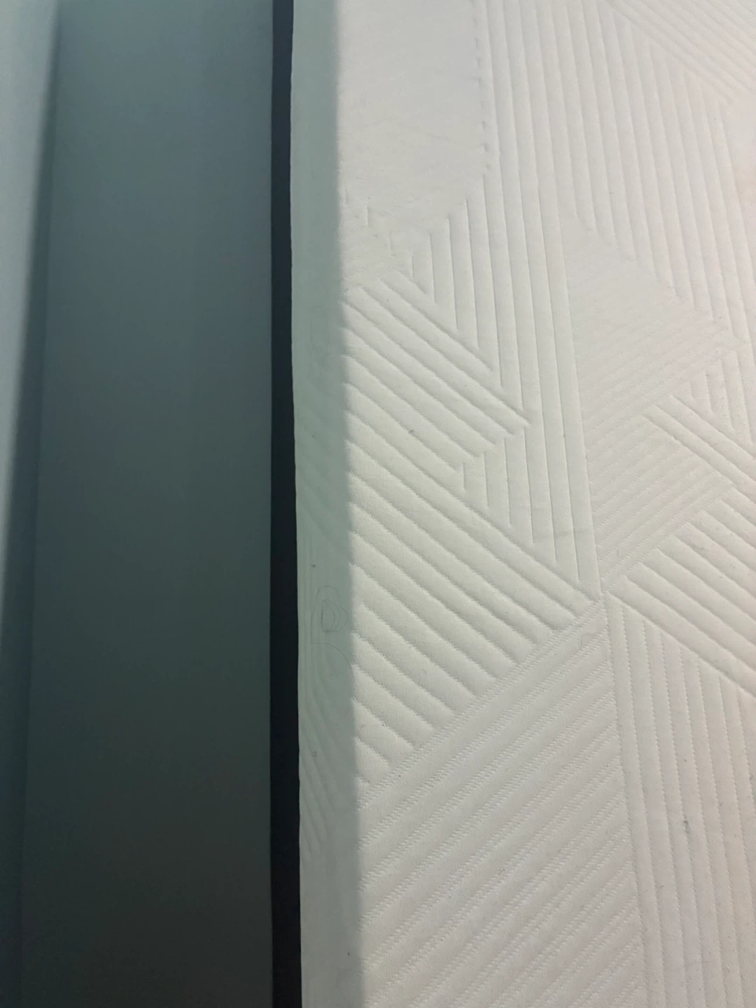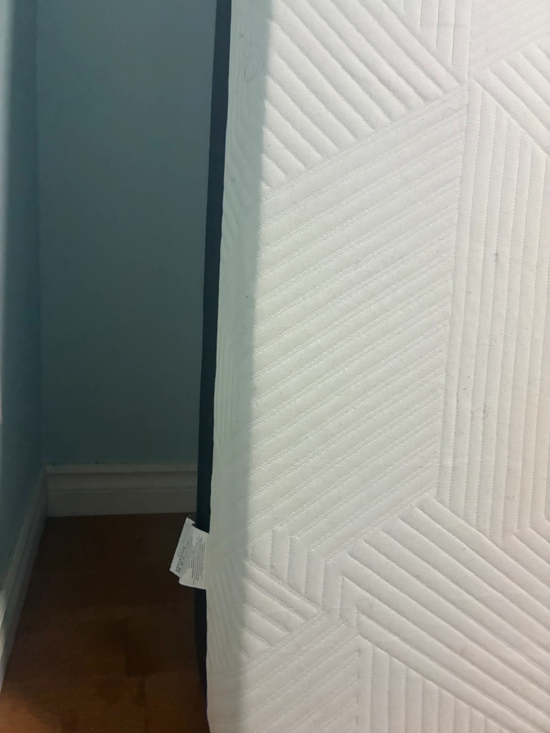 This is a queen-sized mattress. It's designed with a black side panel and a white quilted top. It's a comfortable and supportive mattress.