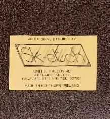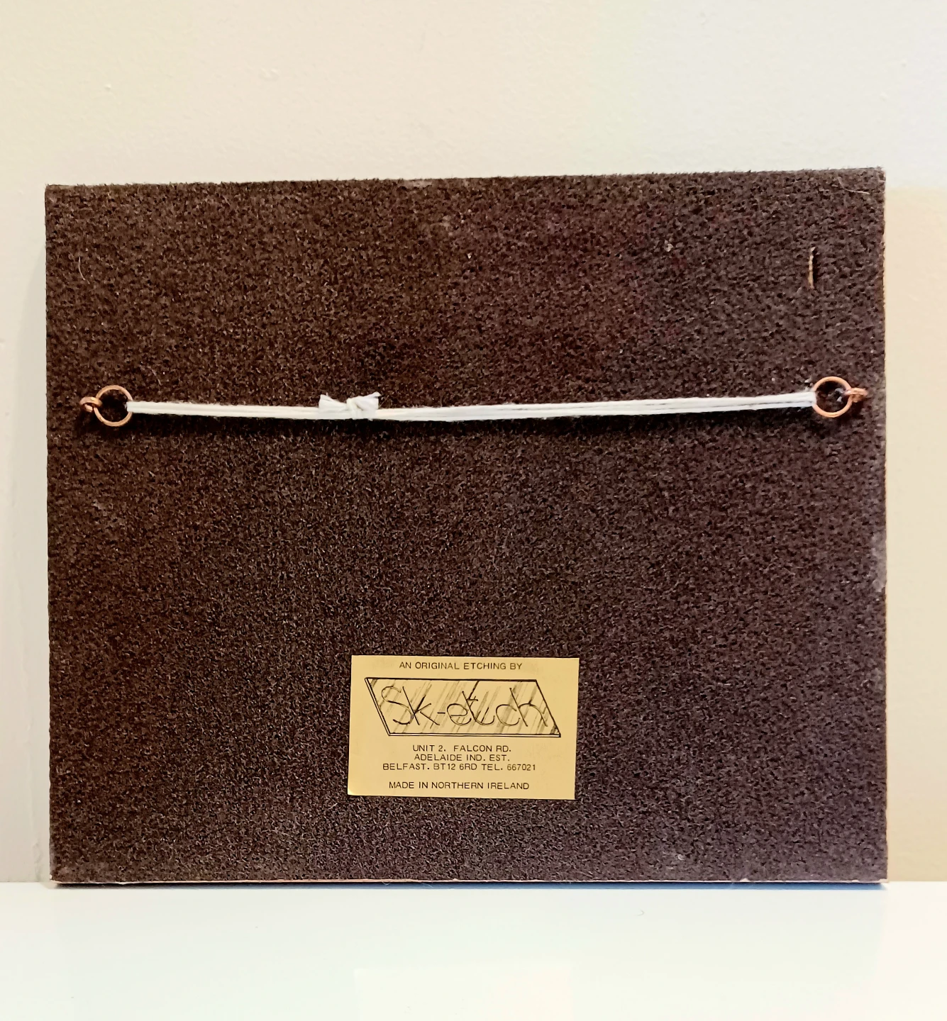 The Artwork is a pen-and-ink style drawing Etched onto a Copper Plate.