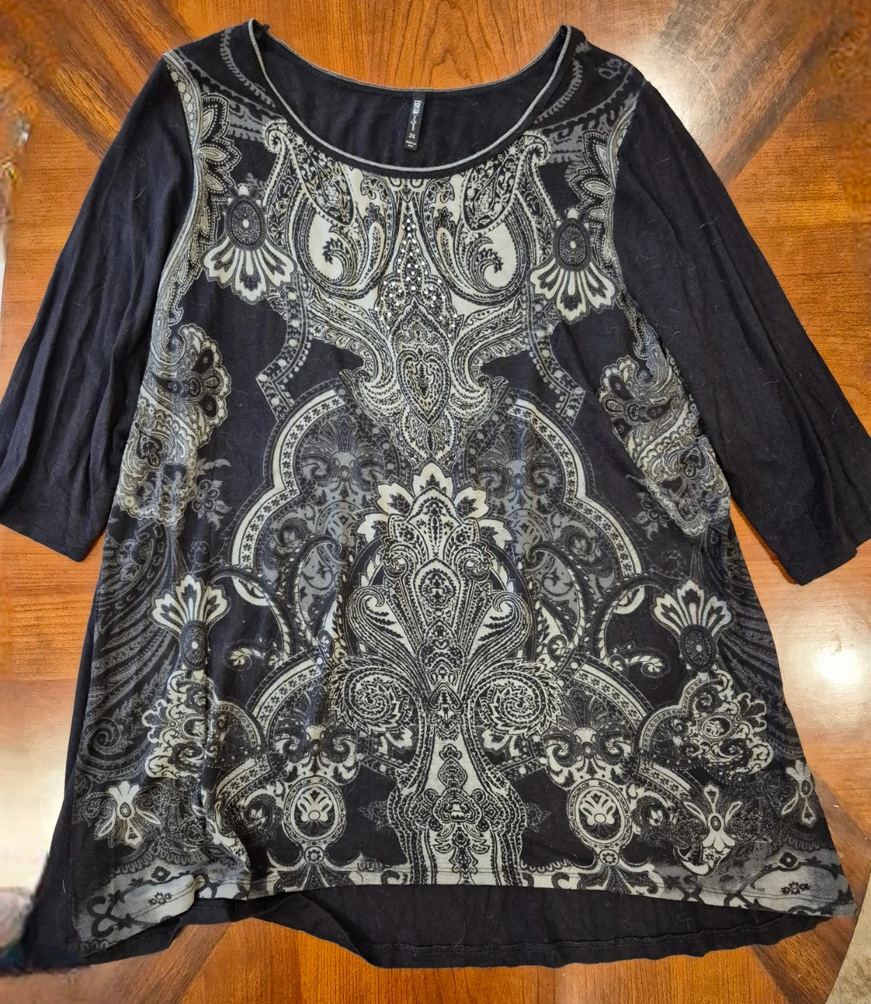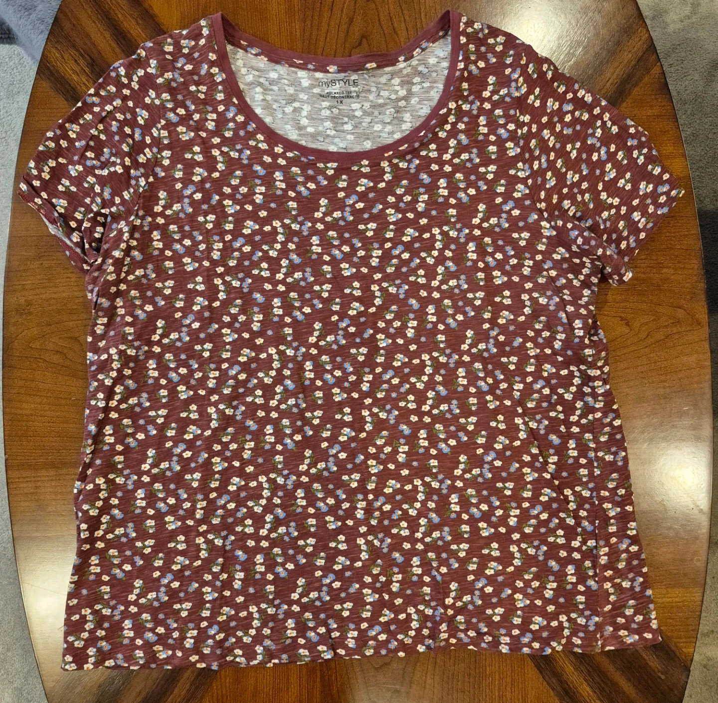Bundle of 5 women's tops in various prints and colours. Three tops are MyStyle brand; one is 1X and two are 2X. The other two tops were purchased at Winners, one is Brody Myles in 2X grey with hearts and frill bottom and the other is also 2X from Edista and has 3/4 sleeves in black with an intricate front pattern and a bit of bling. Material ranges in cotton, polyester, modal, spandex. Selling $2 each or all five for $10. Smoke-free home. Washed and clean, no stains. Thanks. Will only post for one week and if no interest they will go for donation.