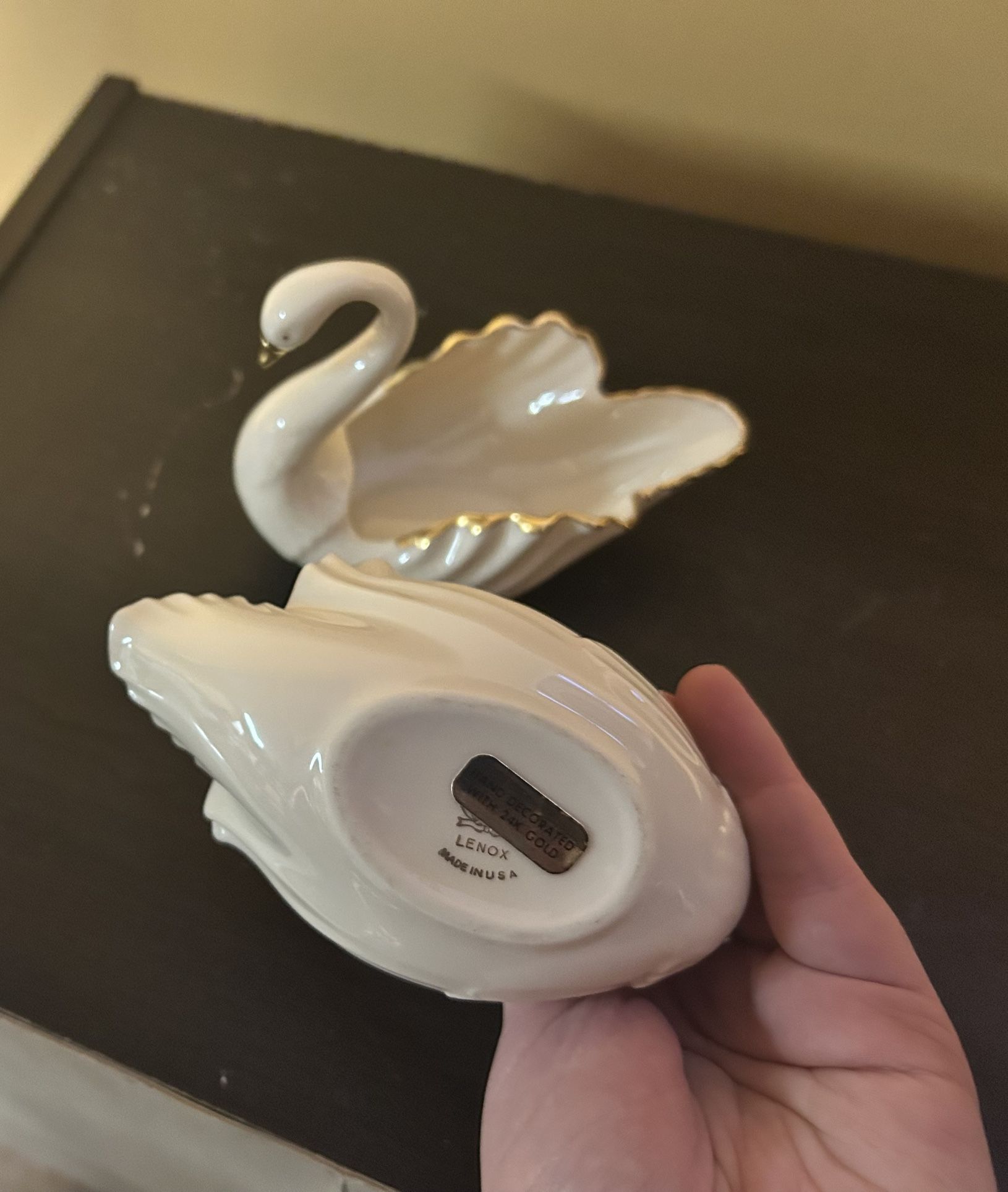 1 / 41 / 4Buy & SellPair of Vintage Lenox Porcelain Swan FigurinesPair of Vintage Lenox Porcelain Swan Figurines$20Pair of Lenox swan dishes. White porcelain with gold accents. Vintage. Small size, perfect for jewelry or trinkets.WHERE TO MEETCheck LocationView MapSELLERverifiedRebecca WOceanside650 reviews0 chats·0 favorites·2 viewsSEND CHAT TO SELLERHi Rebecca W! I’m interested in your listing.Hi Rebecca W! I’m interested in your listing.Get the Karrot app to chatSign In to chat