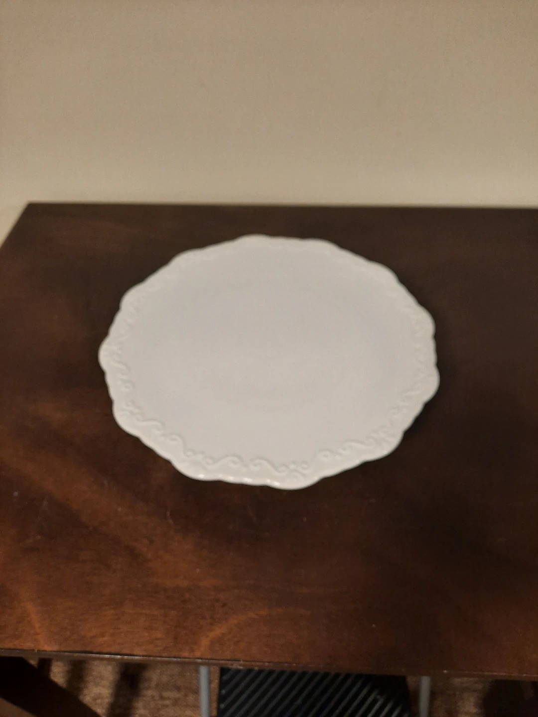White Pedestal Cake Stand with Embossed Design