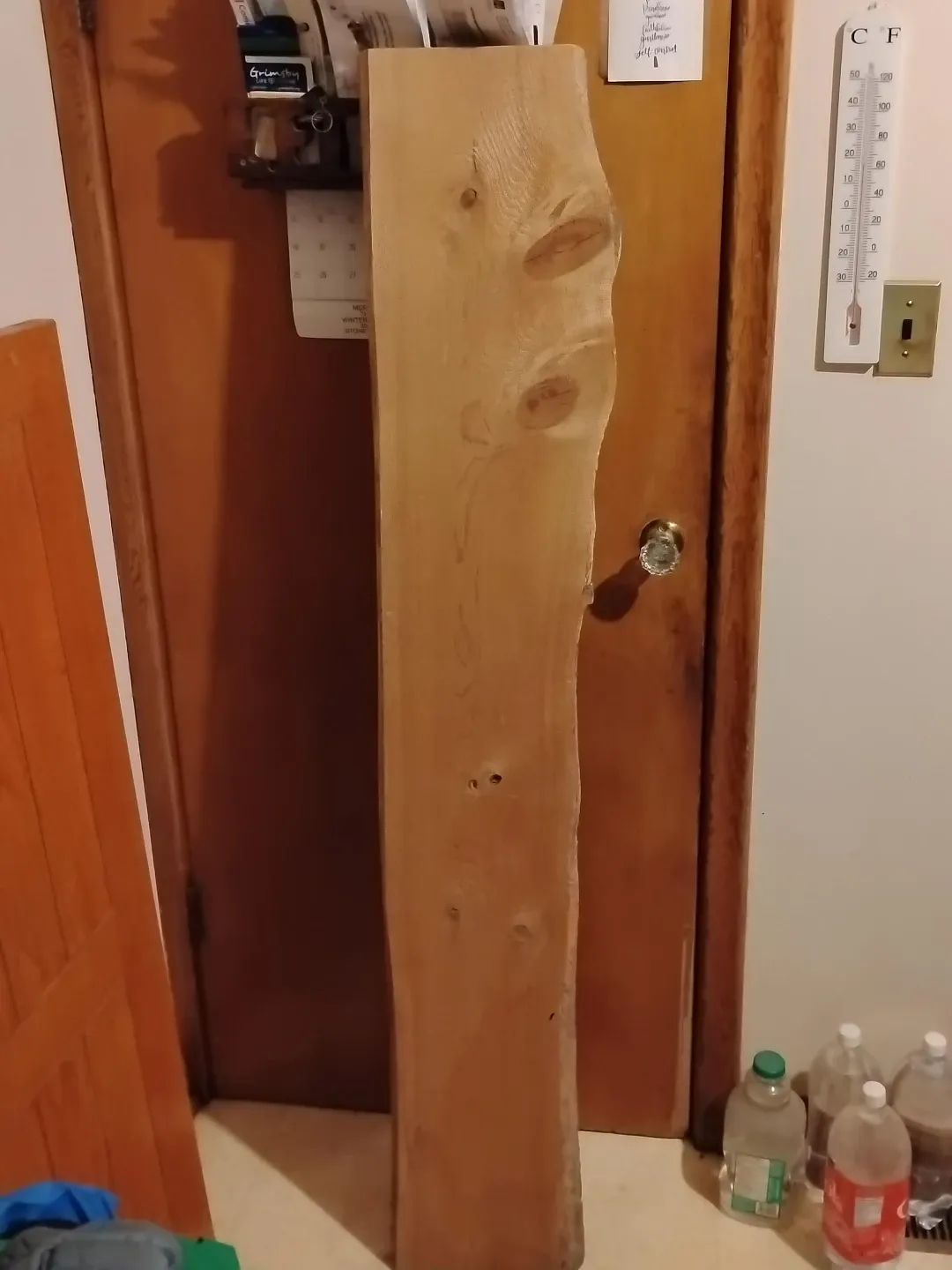A beautiful live edge wood slab, perfect for crafting or custom furniture projects. It showcases natural wood grain and character. Its unfinished state is ready for your creative touch!