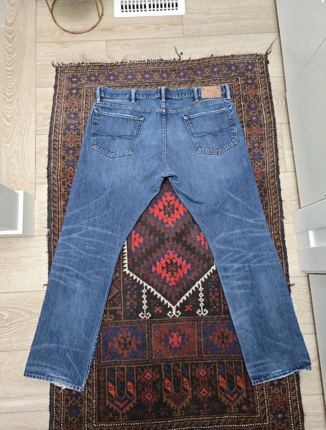 These Polo Ralph Lauren jeans are made from 100% cotton. They are a slim straight fit. These pants are sturdy in quality and authentic in style.