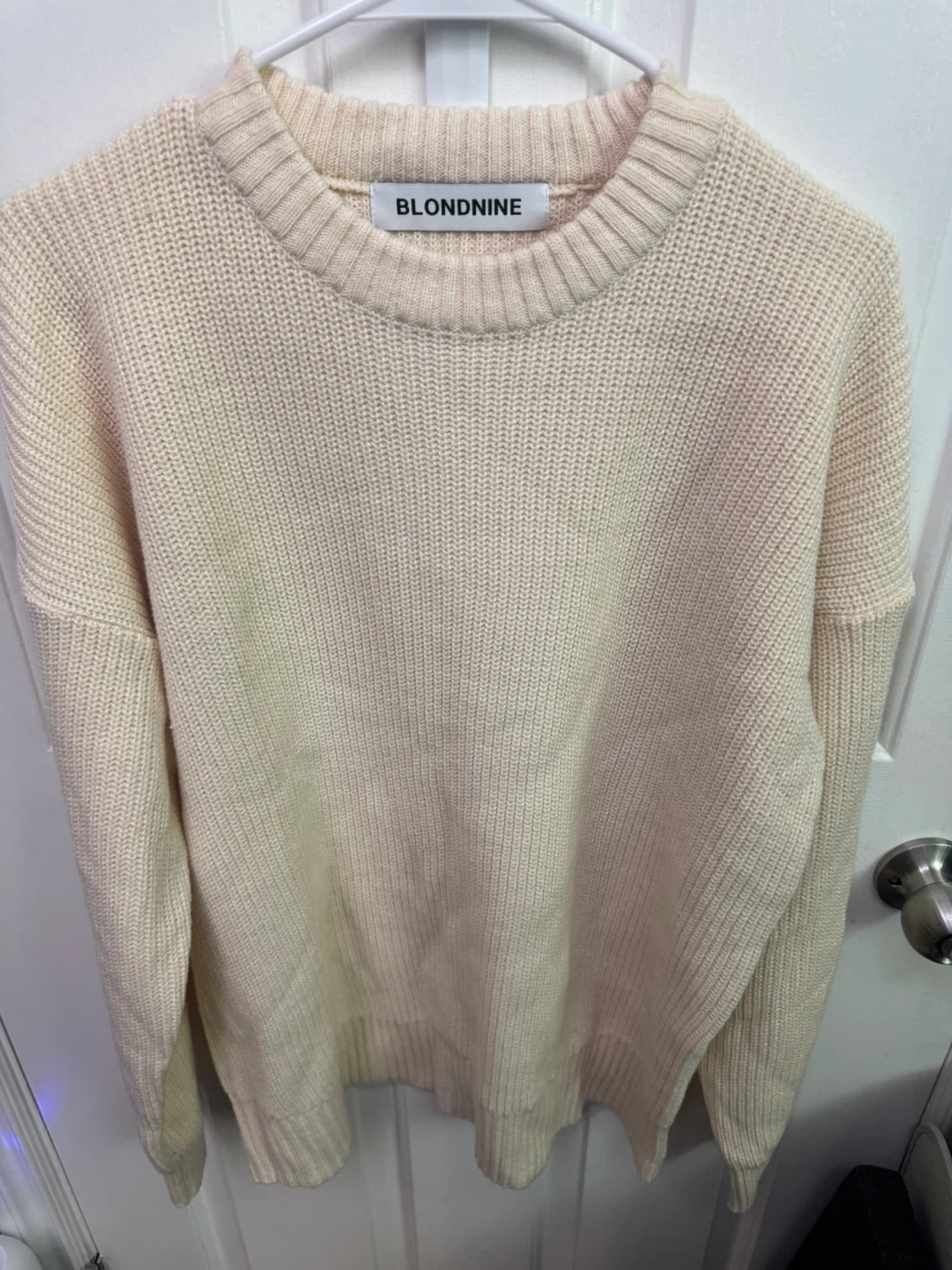 Cozy up in this BLONDNINE cream-coloured knit sweater! It's in great condition and ready for a new home. Perfect for layering or wearing on its own for a comfy, casual look