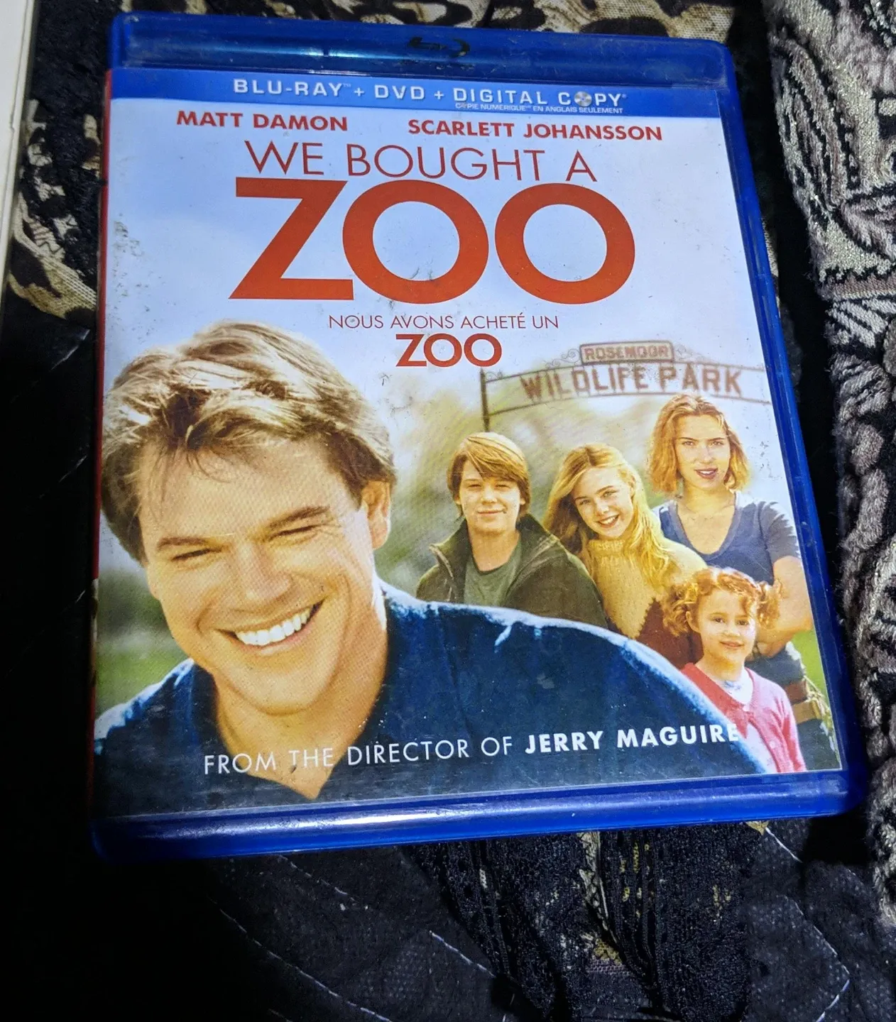 This is the "We Bought a Zoo" movie. It's a Blu-ray, DVD, and digital copy combo pack. The film stars Matt Damon and Scarlett Johansson.