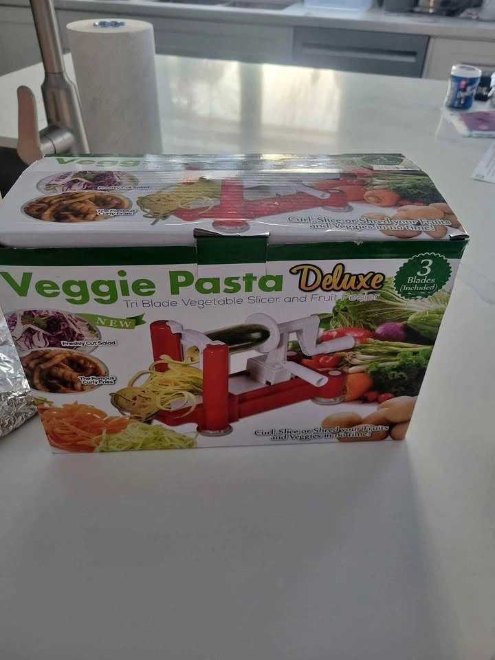 Buy & SellBNIB Veggie Pasta DeluxeBNIB Veggie Pasta Deluxe$10Brand new in box Veggie Pasta Deluxe. Make healthy pasta dishes with ease!WHERE TO MEETCheck LocationView MapSELLERStephaniePelmo Park-Humberlea424 reviews0 chats·1 favorites·17 viewsSEND CHAT TO SELLERHi Stephanie! I’m interested in your listing.Hi Stephanie! I’m interested in your listing.Get the Karrot app to chatSign In to chat