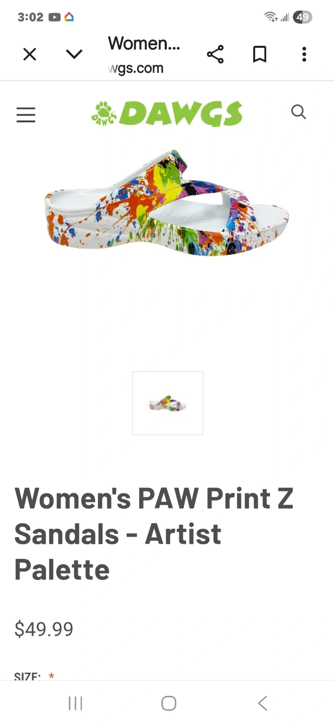 DAWGS Women's PAW Print Z Sandals Artist Palette Size 9