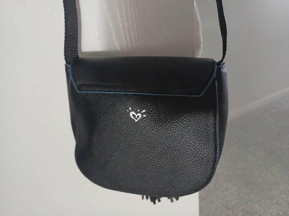 Cute black crossbody bag from Justice! It features a fun, colourful 'C' design on the front and stylish tassels.