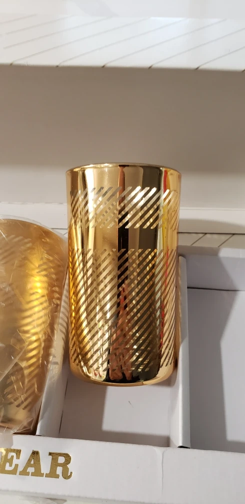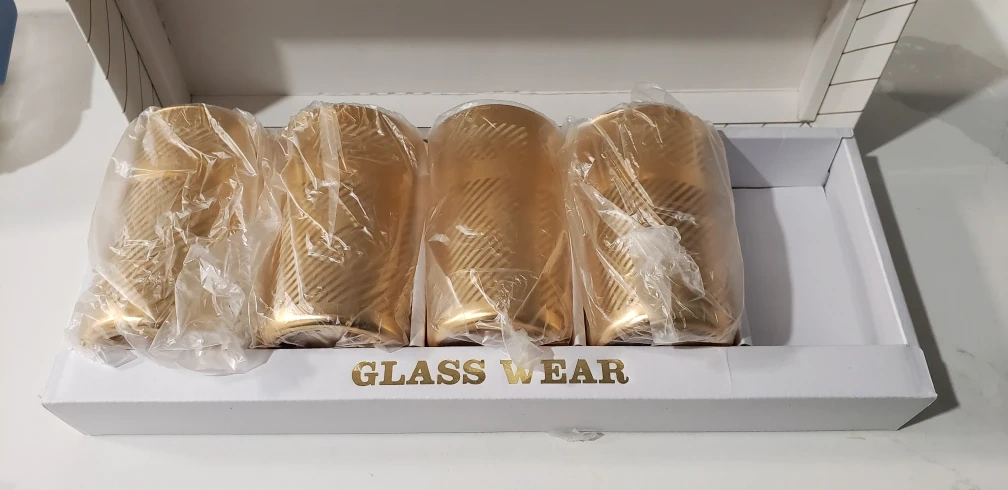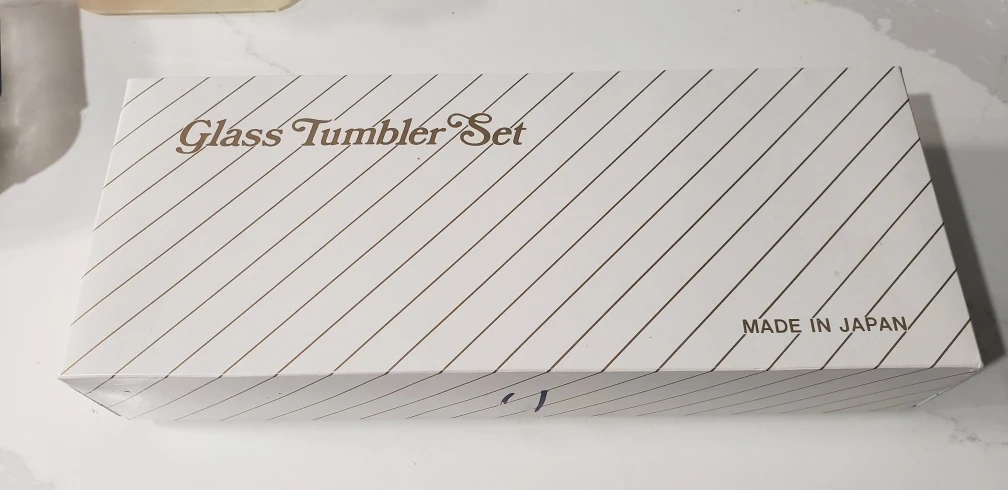 Set of 4 golden glass tumbler with a striped pattern. Made in Japan. in original package, original box.