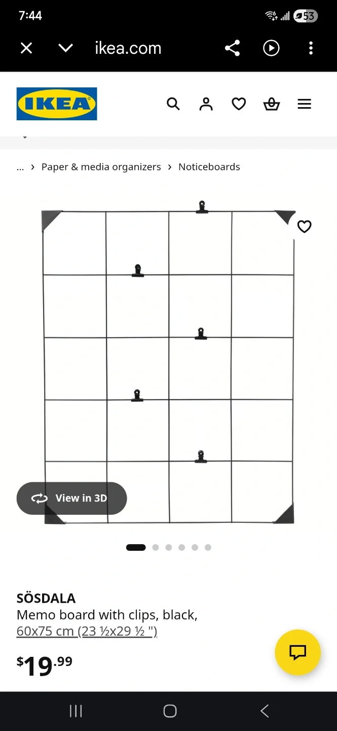 IKEA SÖSDALA memo board with clips included. It's black and measures 60x75 cm. This grid board is great for displaying photos or notes.