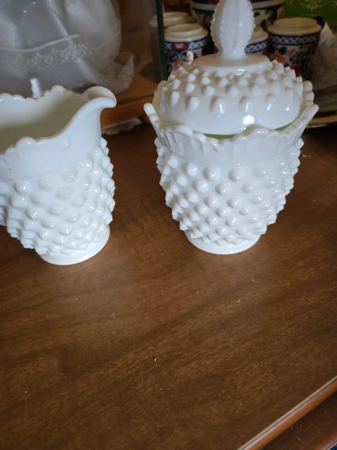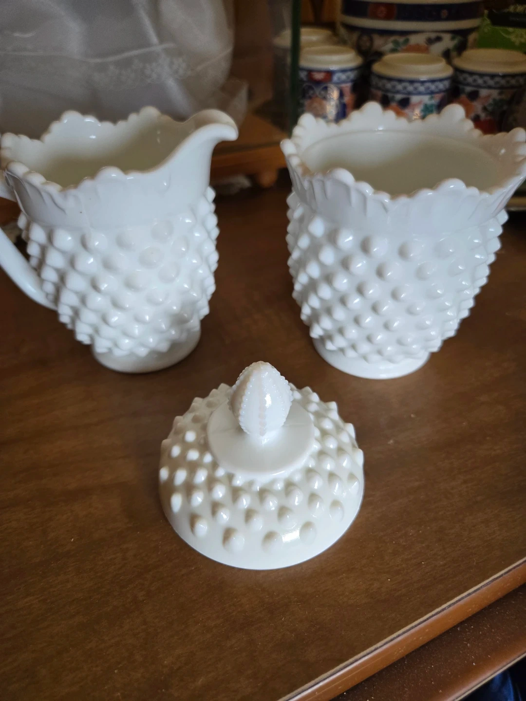 Hobnail Milk Glass Creamer and Sugar Bowl Set