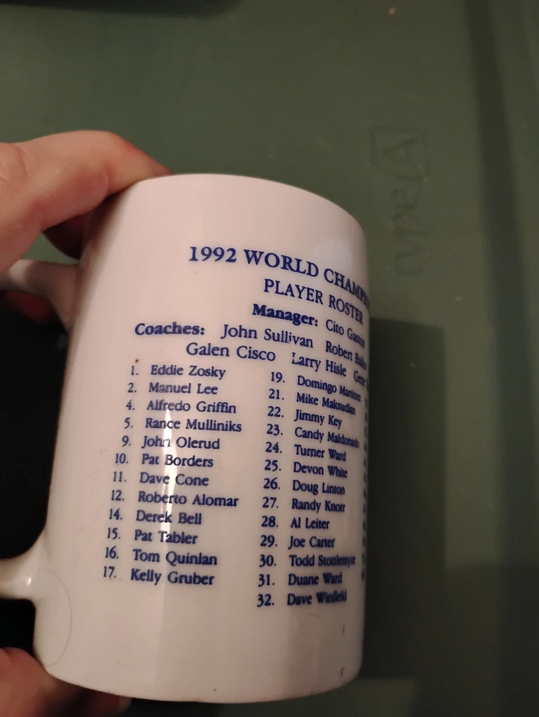 VINTAGE! 1992 BLUE JAYS WORLD SERIES CHAMPIONS MUG. AS YOU CAN SEE IN THE PHOTOS, THE MANAGERS AND PLAYERS NAMES ARE ON IT.