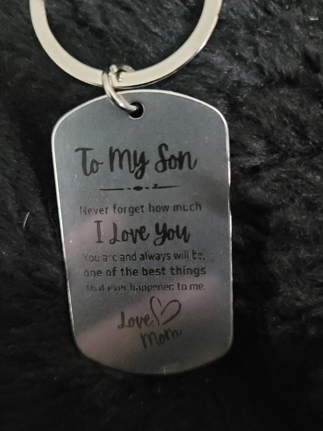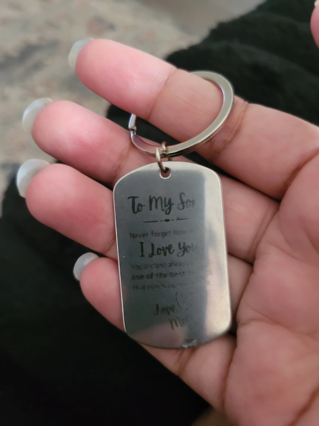 Selling a keychain that says "To My Son, Never forget how much I love you. You are and always will be, one of the best things that ever happened to me. Love, Mom"
