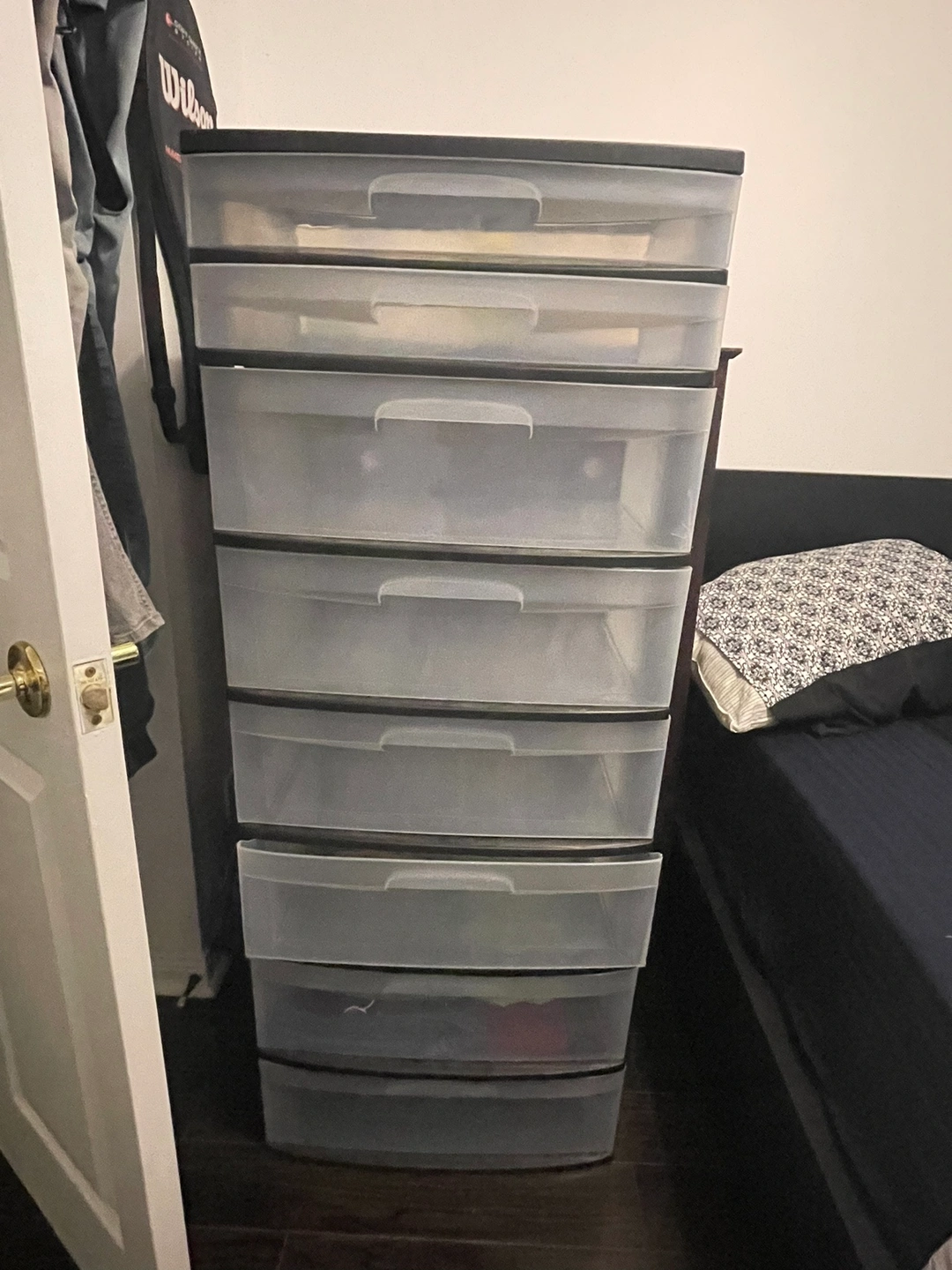 Can be disassembled easily & made into 2 towers of 4 drawers each.