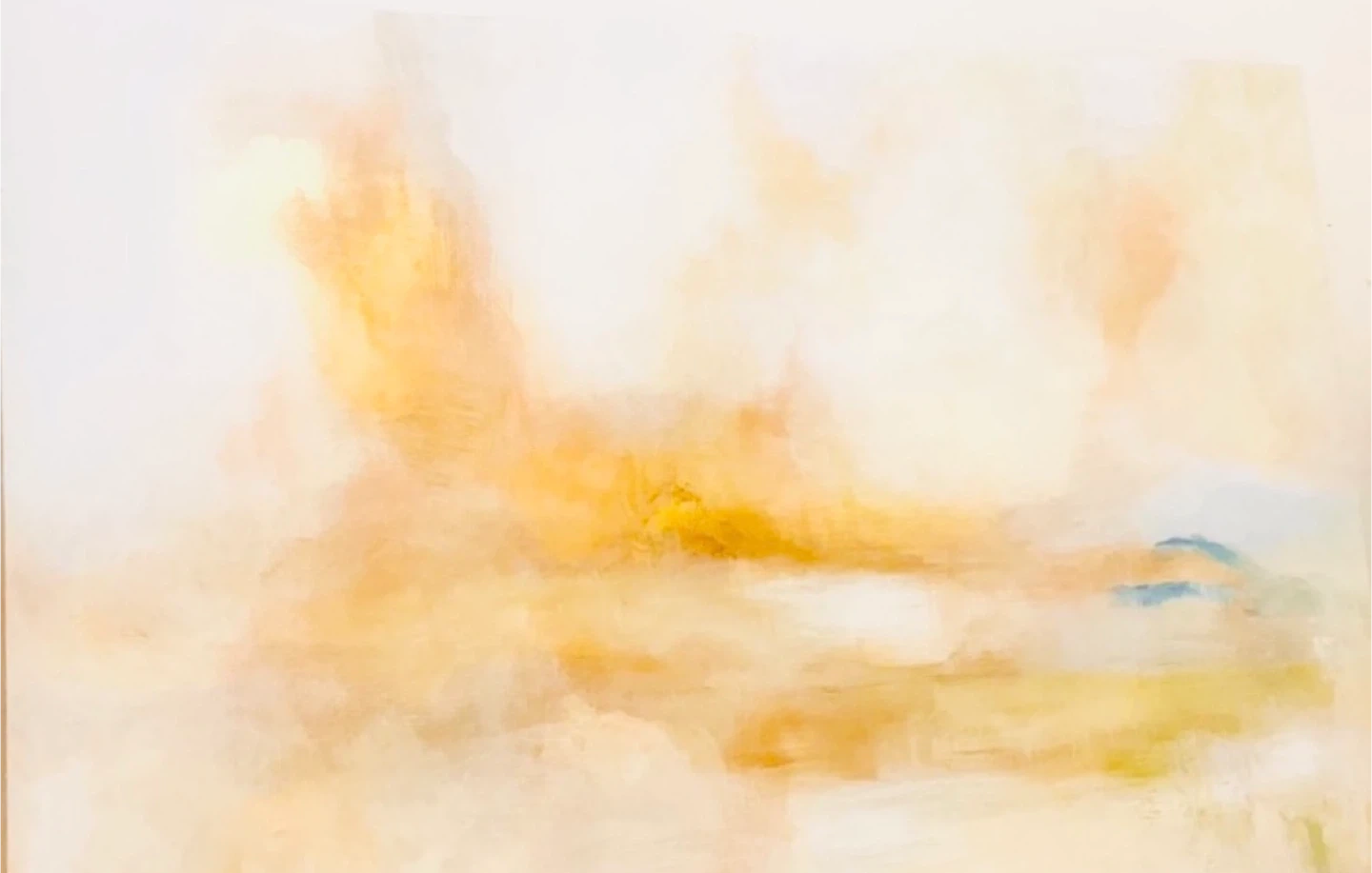 This is a large abstract landscape art piece with warm yellow, orange, and white tones. It's perfect for adding a splash of colour to any room. 44x66 signed canvas