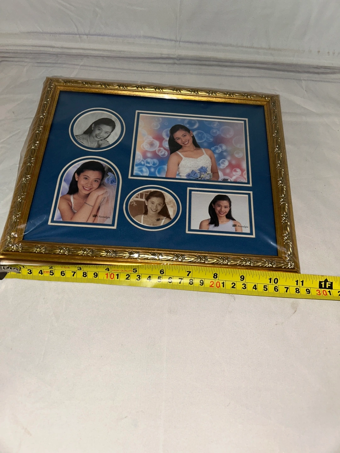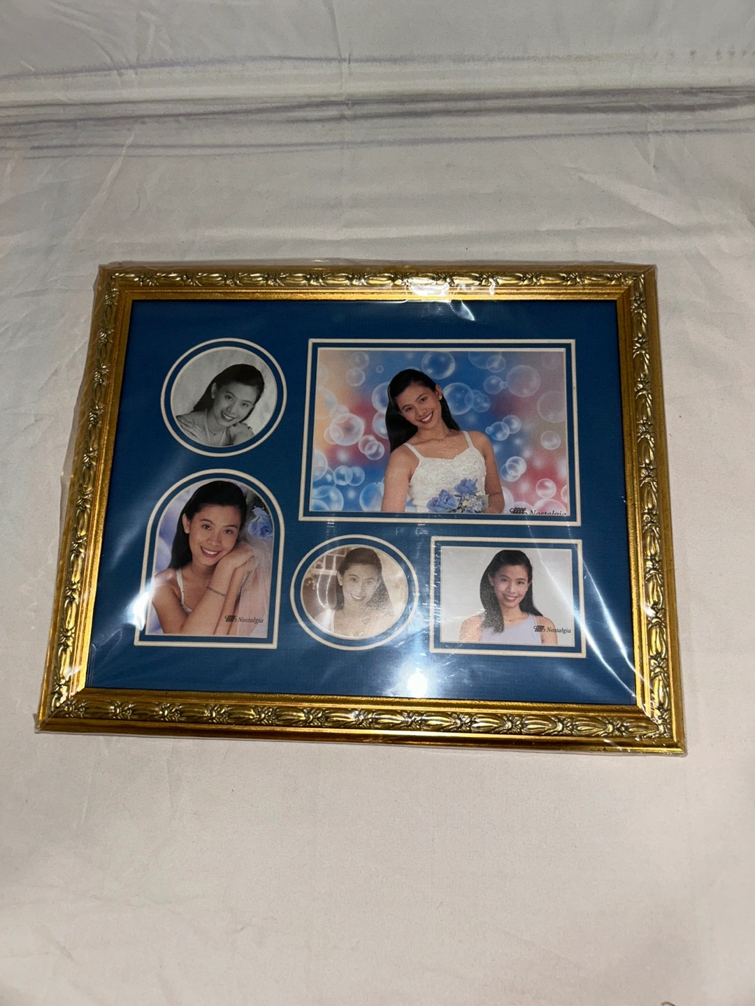 New Nostalgia photo frame. It has a gold-coloured frame with cutout background for the photos. Perfect for displaying your favourite memories! Three different frame design to choose from. $10 each or $25 for 3.