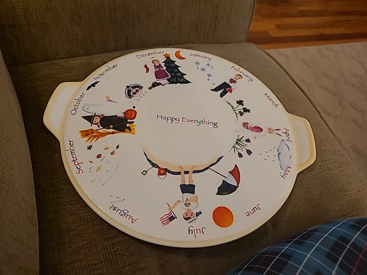 Selling a cute Happy Everything round platter! It features different holiday-themed designs for each month of the year. Perfect for serving up some fun!