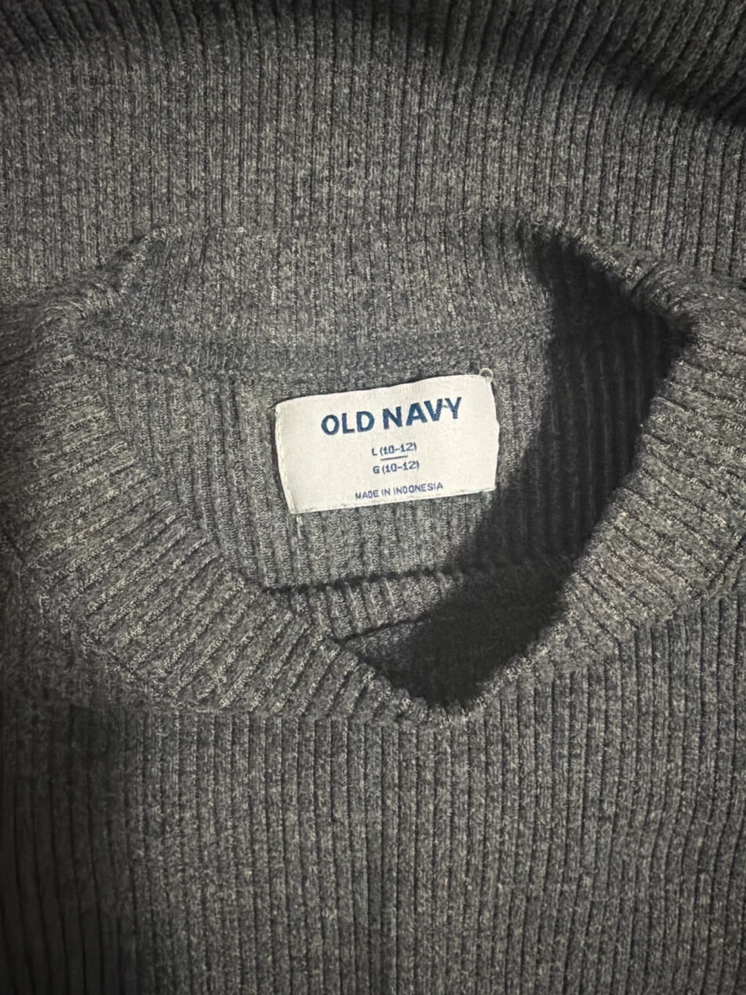 Grey ribbed dress from Old Navy. It's a size L, fitting 10-12 years. This dress features a drawstring waist for an adjustable fit. It's made in Indonesia.