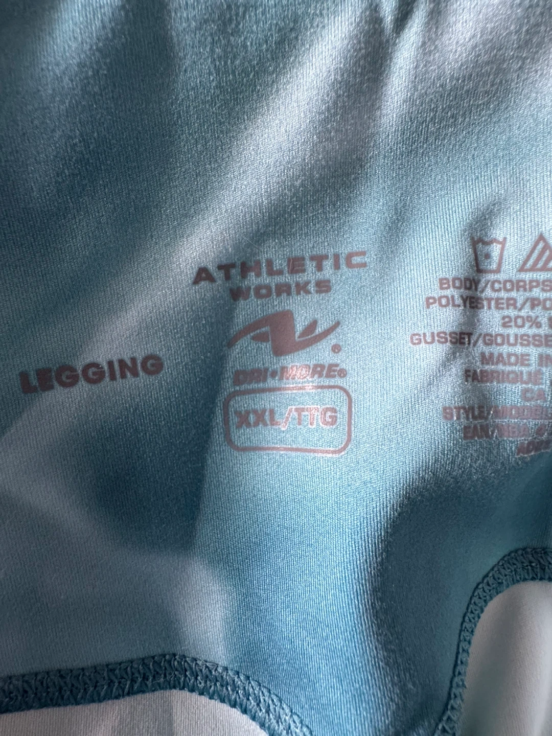 These Athletic Works leggings are size XXL. They're made with 80% polyester and 20% spandex for comfort and flexibility. These leggings feature convenient side pockets. They're great for workouts or casual wear!