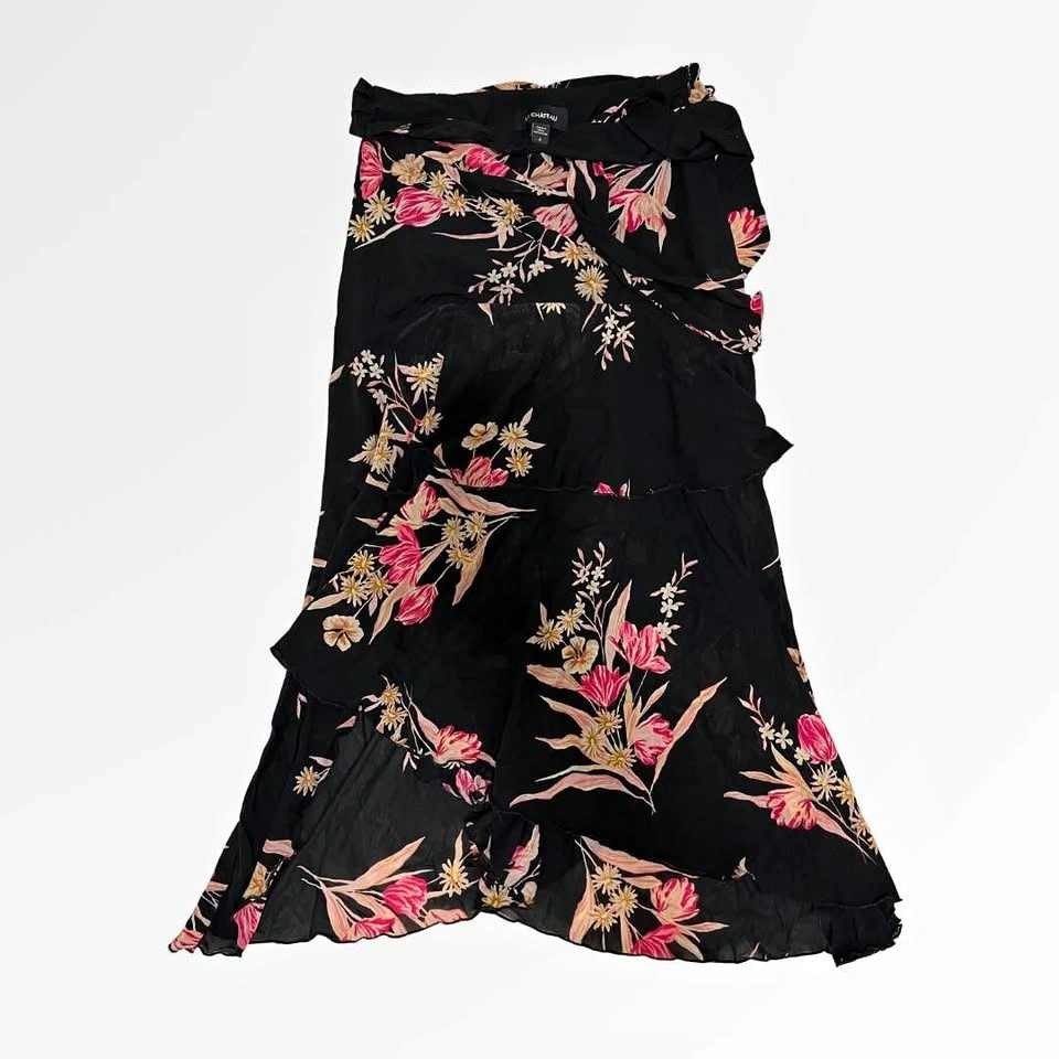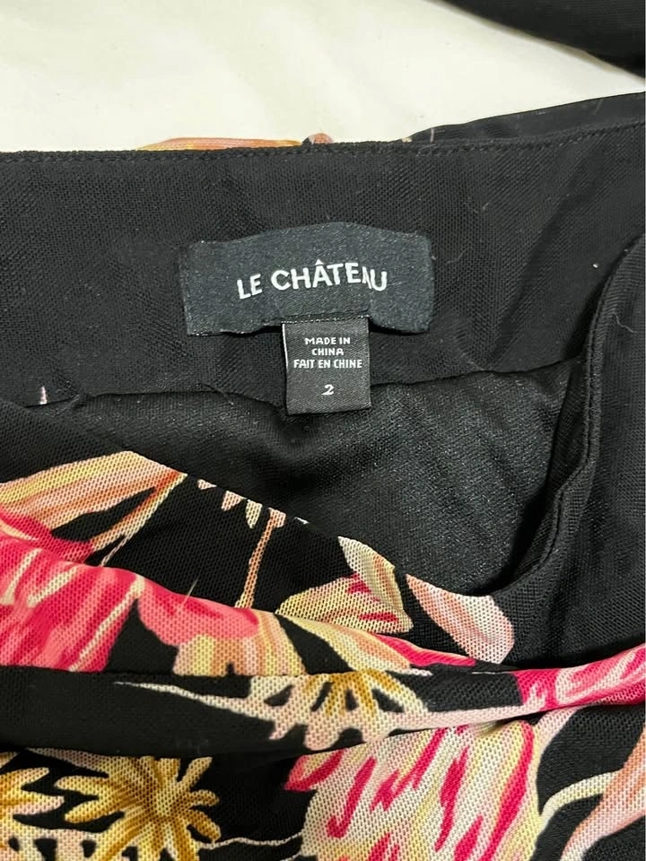 Vintage Le Chateau Floral Skirt | Size 2. In great condition aside from a loose belt loop pictured; can be easily stitched. Black lining. Really flowy and beautiful, perfect for spring/summer! Pick up near Adelaide St E / Sherbourne.