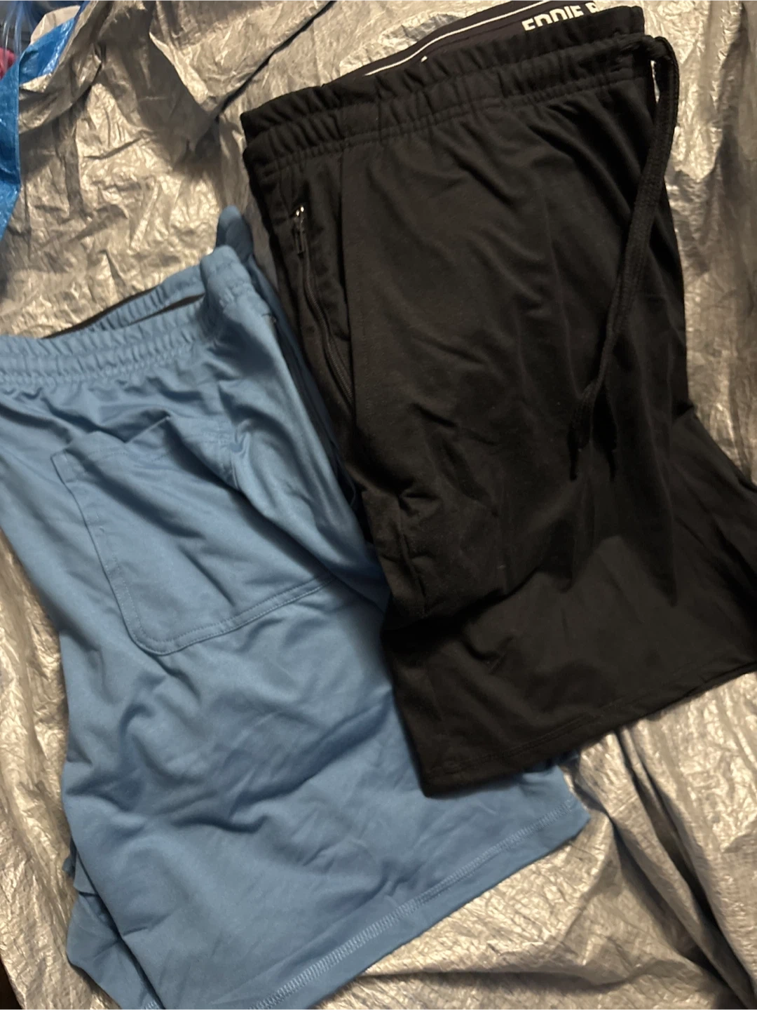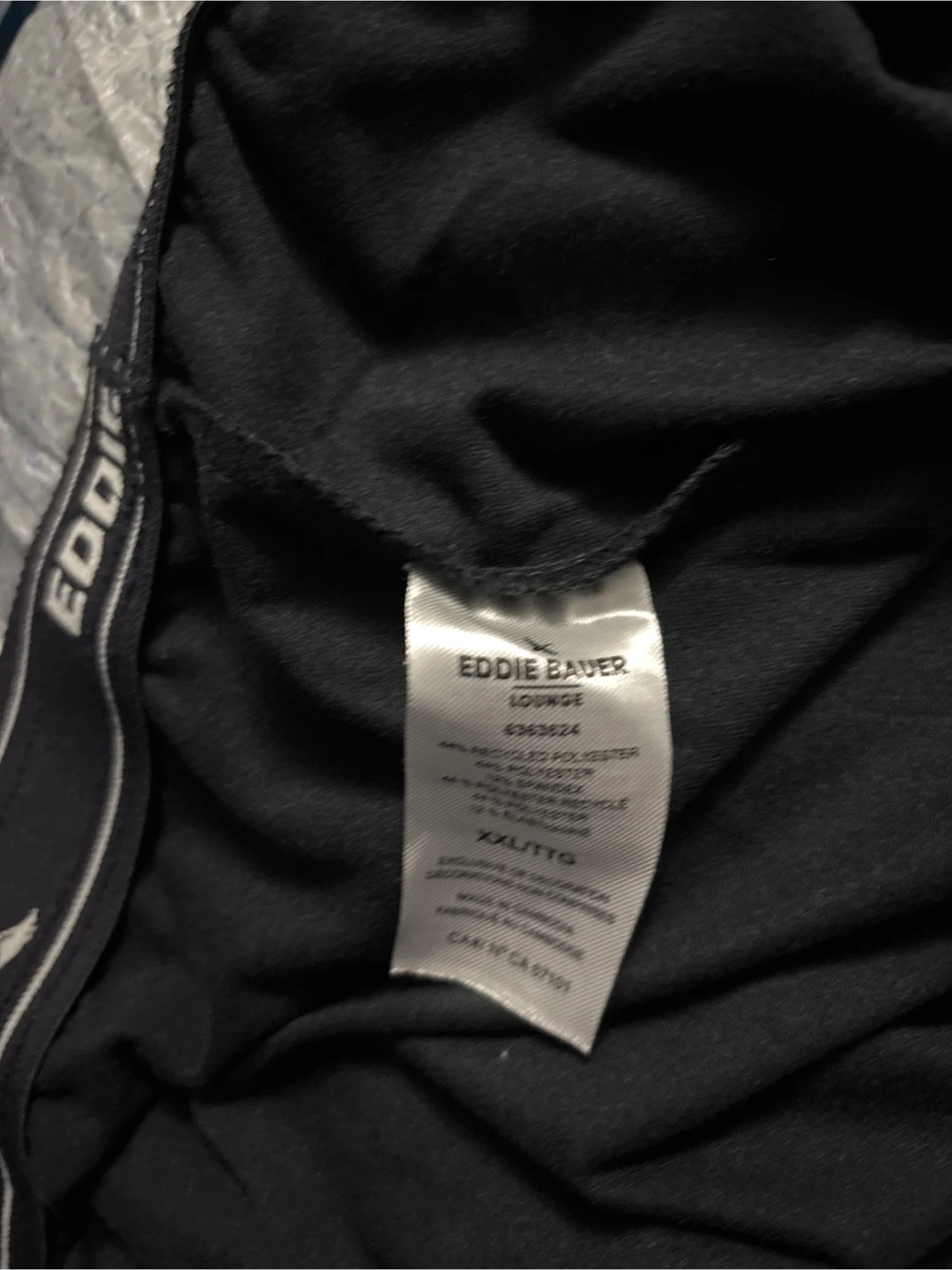 62$10 for both Selling two pairs of Eddie Bauer Lounge shorts in size XXL. One pair is black and the other is blue. They are made of 44% recycled polyester and are in great condition!